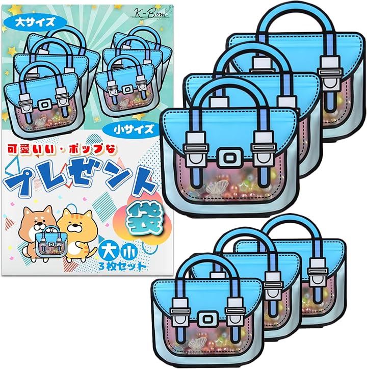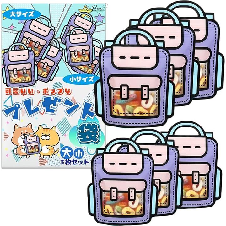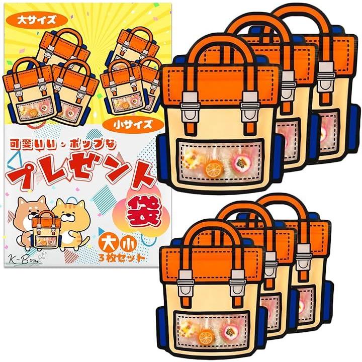 プレゼント 袋 ラッピング ギフトバッグ ジッパー付き袋 持ち手付き マチ付き クリア窓 大3枚 小3枚 6枚セット お菓子入れ おやつ入れ 小学生 中学生 女子