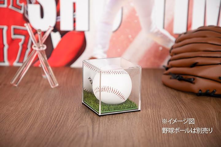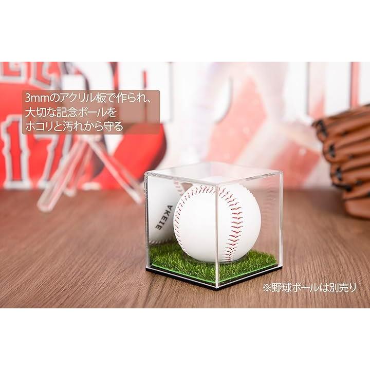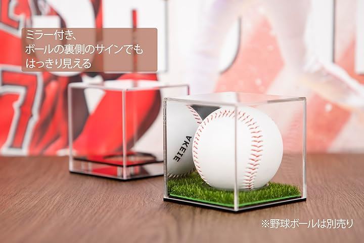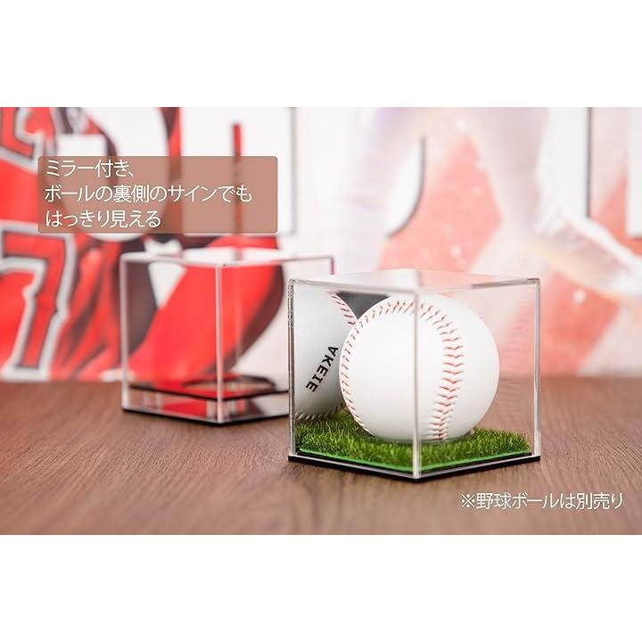 野球ボールケース サインボールケース ミラー付き 芝生付き 野球用 アクリル製 ディスプレイケース 保護 展示 防塵 四角型 コレクションケース 透明ケース