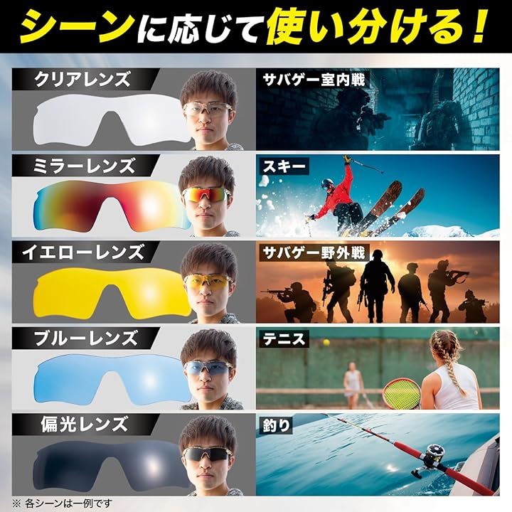 レンズ超強化型 サングラス サバゲー シューティンググラス レンズ5枚セット 偏光レンズもあり