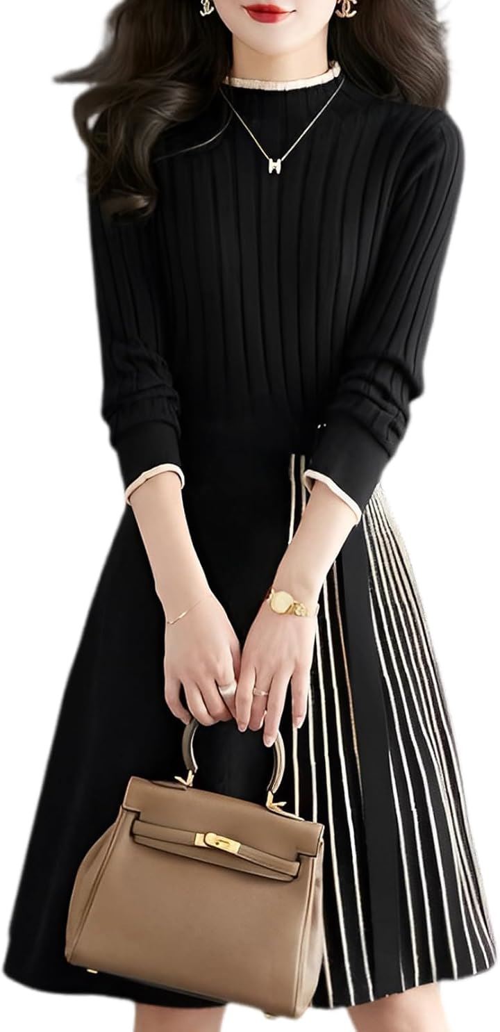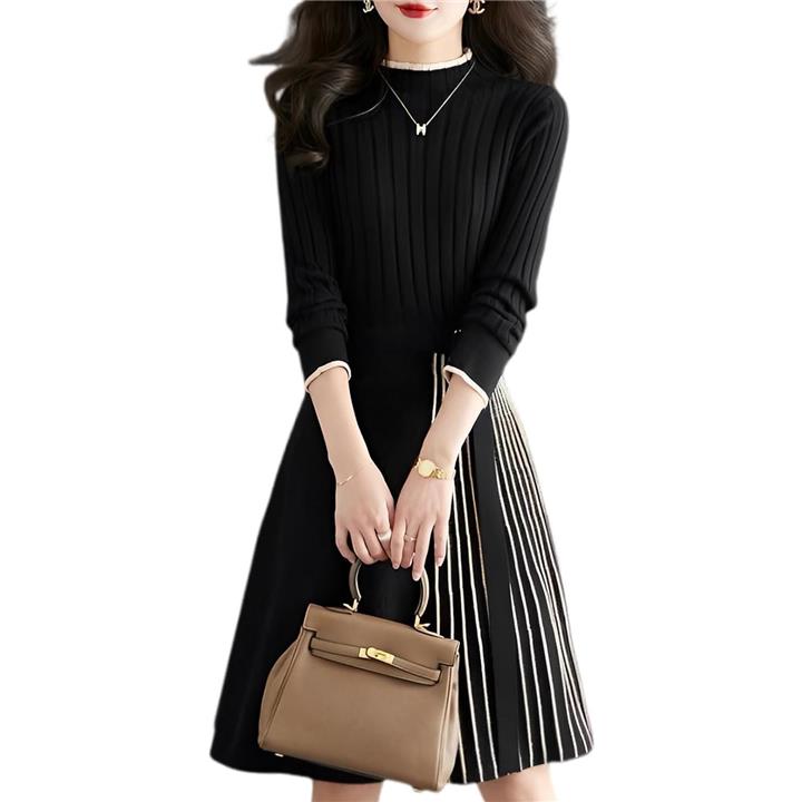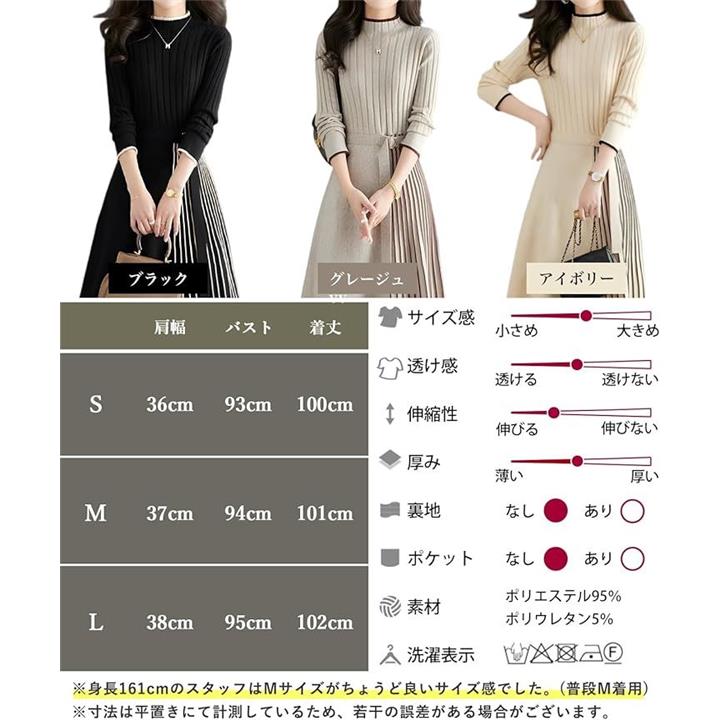 [ニーマンバイ] ニットワンピース エレガント 大人 上品 プリーツ風 ニット ワンピ おしゃれ オフィスカジュアル スタイリッシュ 韓国風 モード 4A-N14-BKL |