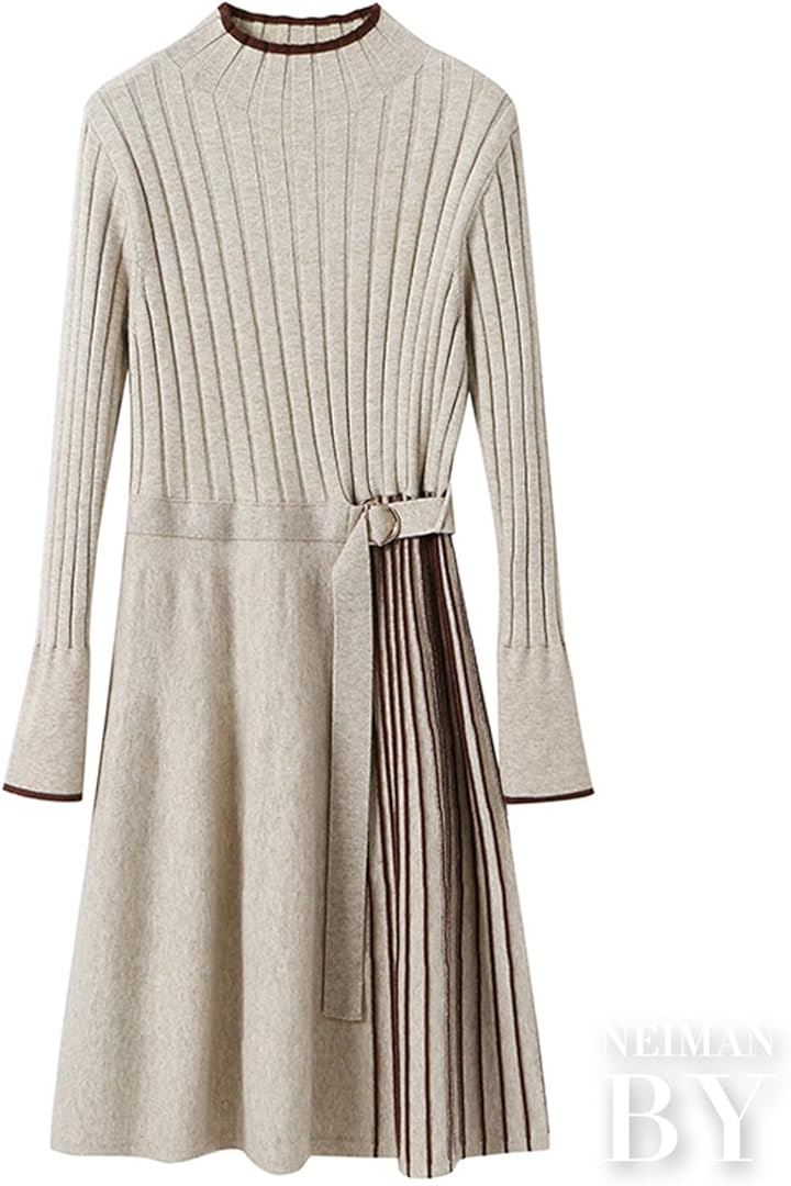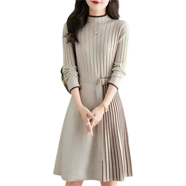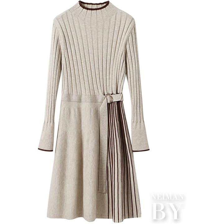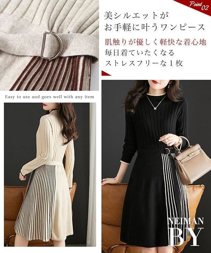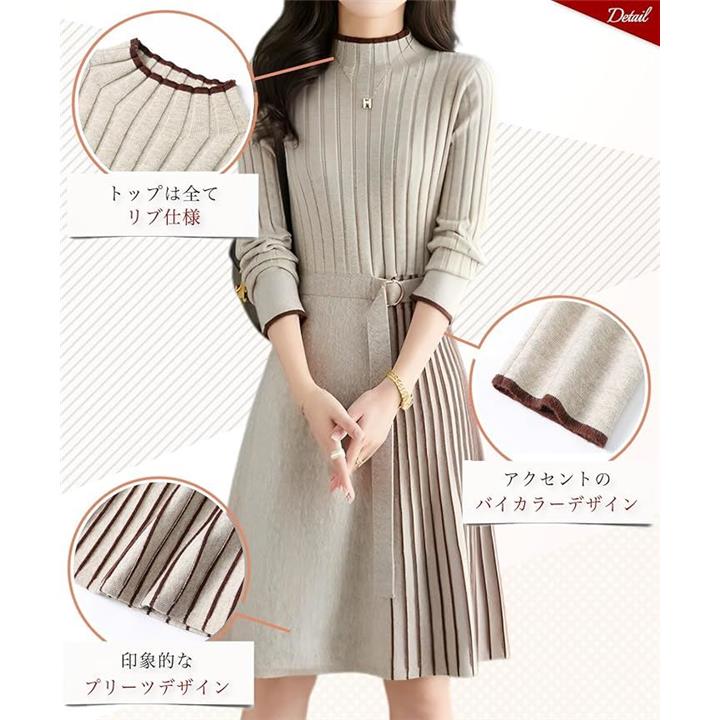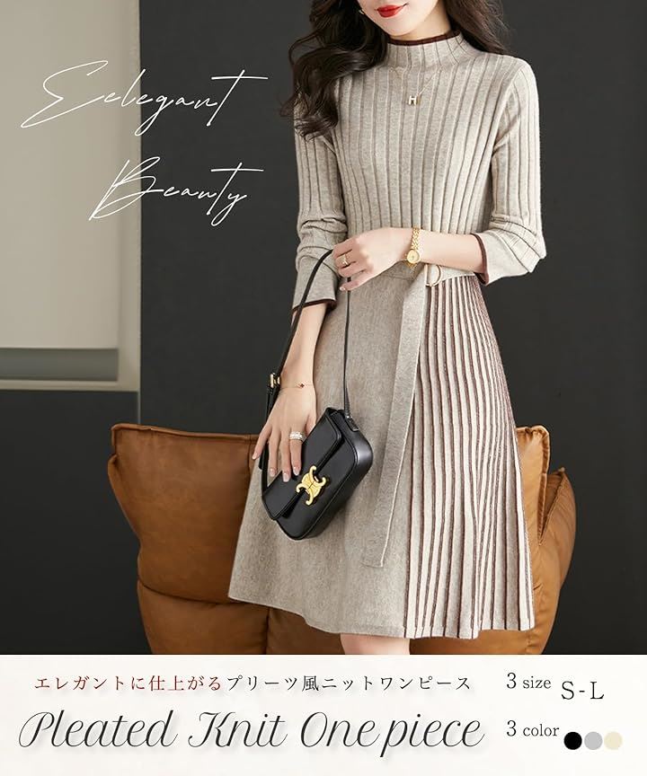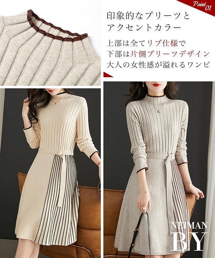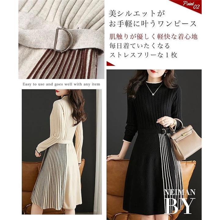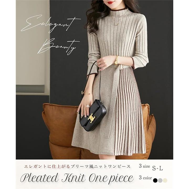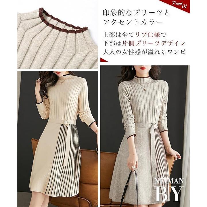 [ニーマンバイ] ニットワンピース エレガント 大人 上品 プリーツ風 ニット ワンピ おしゃれ オフィスカジュアル スタイリッシュ 韓国風 モード 4A-N14-LGS |