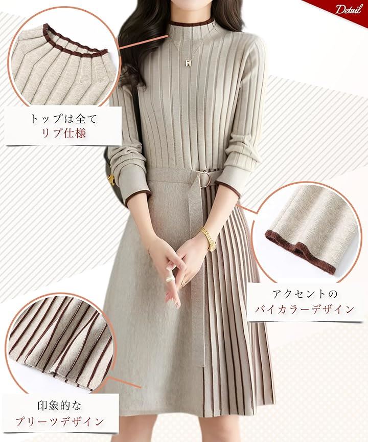 簡単におしゃれが叶うリブニットワンピは、10,20,30,40,50代と幅広い年代の方にお楽しみいただけます。