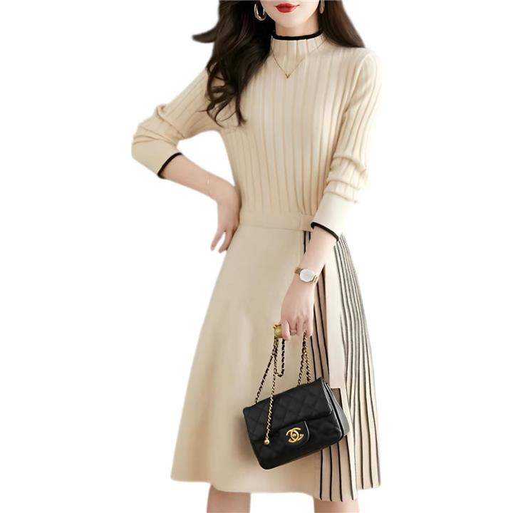 [ニーマンバイ] ニットワンピース エレガント 大人 上品 プリーツ風 ニット ワンピ おしゃれ オフィスカジュアル スタイリッシュ 韓国風 モード 4A-N14-IVL |