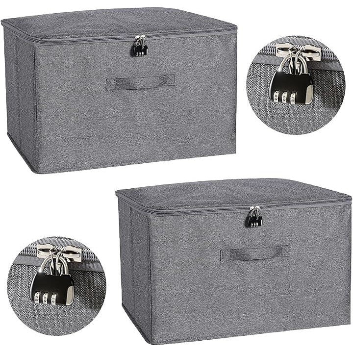 CAWKAY 収納ボックス 鍵付き ダイヤル錠 収納ケース 大容量 折りたたみ 取っ手付き 衣類 収納 ふた付き おしゃれ 布製 ファスナー |