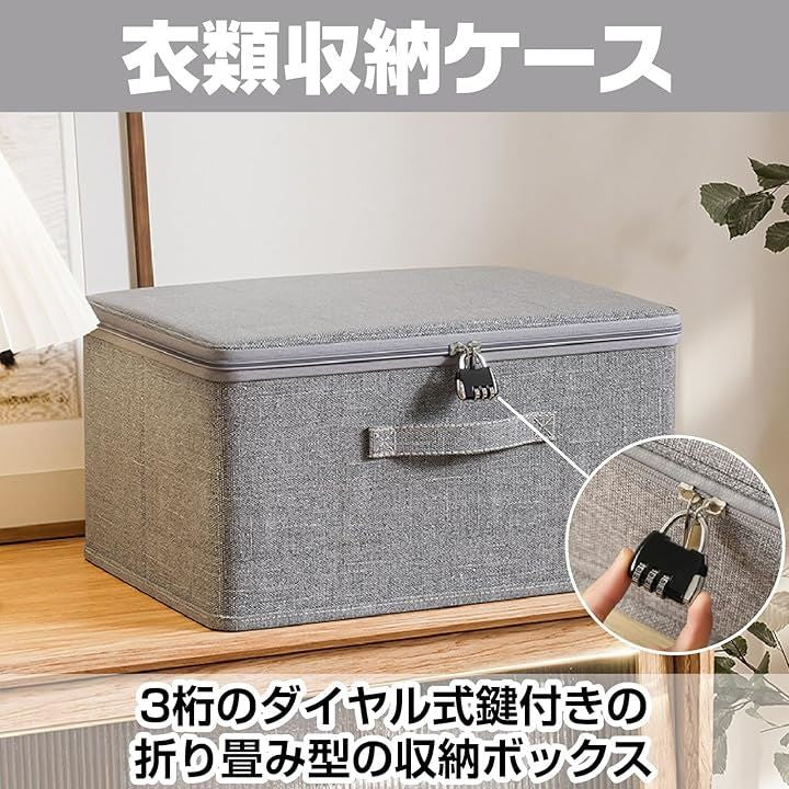 「CAWKAY 収納ボックス 鍵付き ダイヤル錠 収納ケース 大容量 折りたたみ 取っ手付き 衣類 収納 ふた付き おしゃれ 布製 ファスナー」
