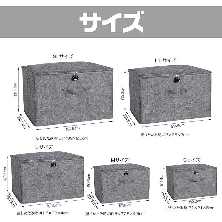 「大容量で多用途」 5サイズ(S:30x20x14cm、M:38x25.5x16cm、L:40x30x21cm、LL:45x35x26cm、3L:49x37x31cm)展開のこの収納ボックスは、衣類、書類、おもちゃ、その他生活用品や事務用品を用途に合わせてたっぷり収納できます。