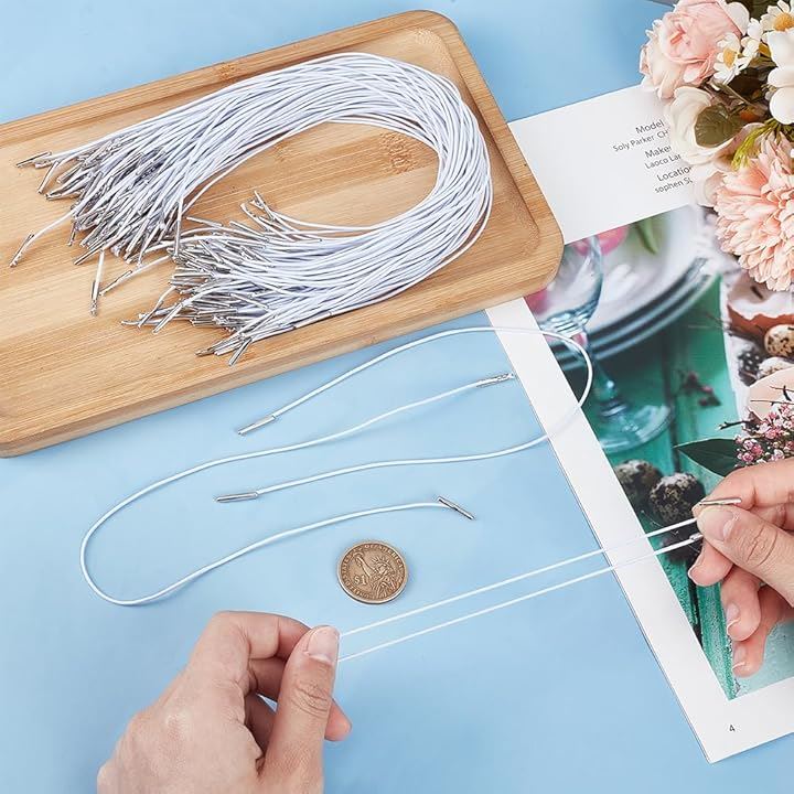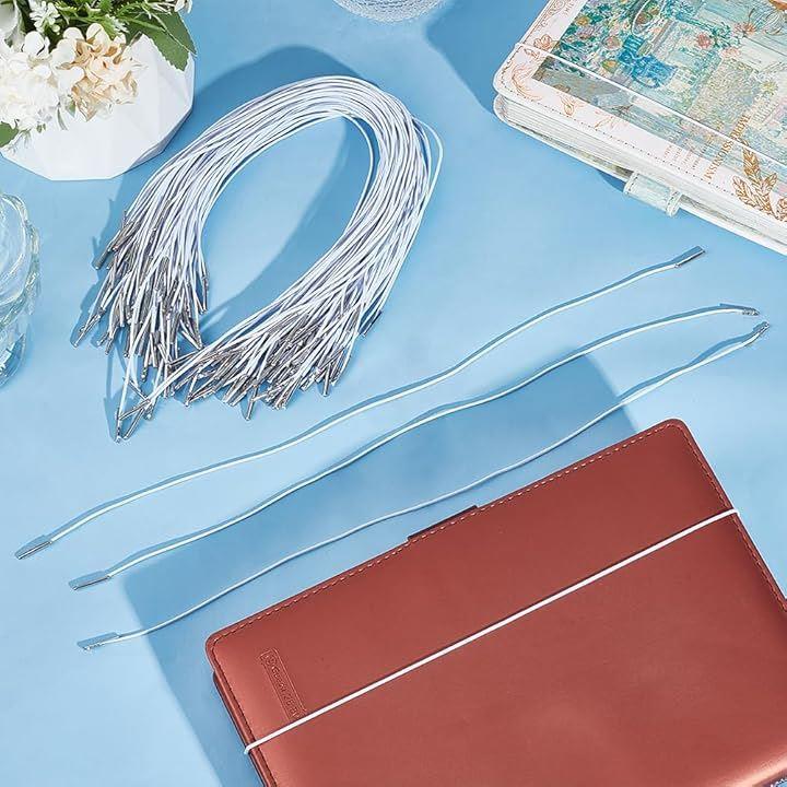 100本 弾性コード 弾性有刺鉄線コード ステンレススチールパーツ付き DIY用のゴム紐 小物保持用 弾性ロープ 丸ゴムひも 交換用ロープ 帽子のゴム紐用