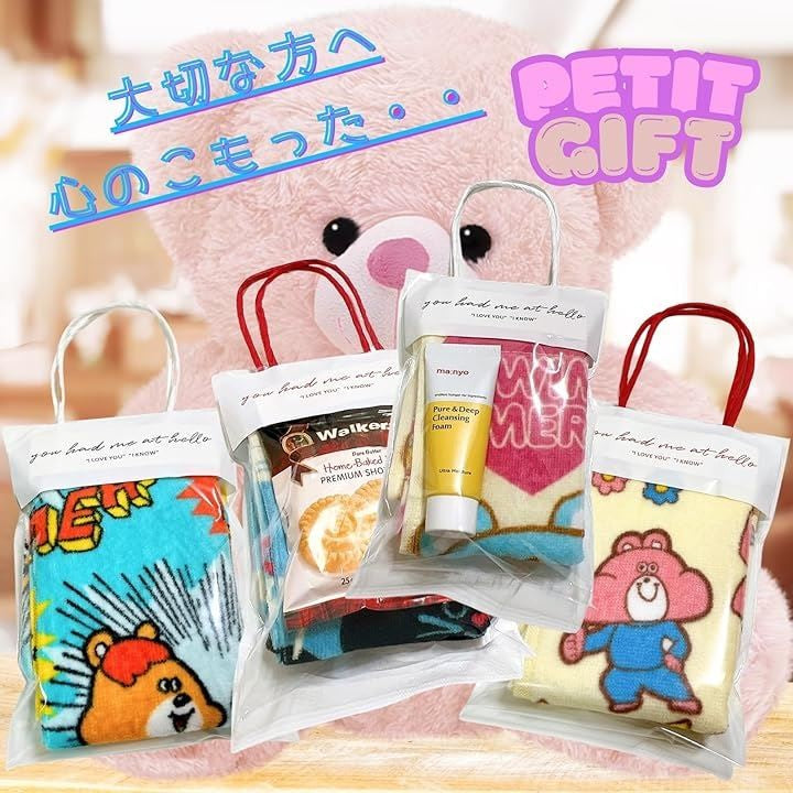ゆめかわ タオル ギフト プレゼント ラッピング セット ギフトバッグ付 SW2498 5柄x各1枚5枚
