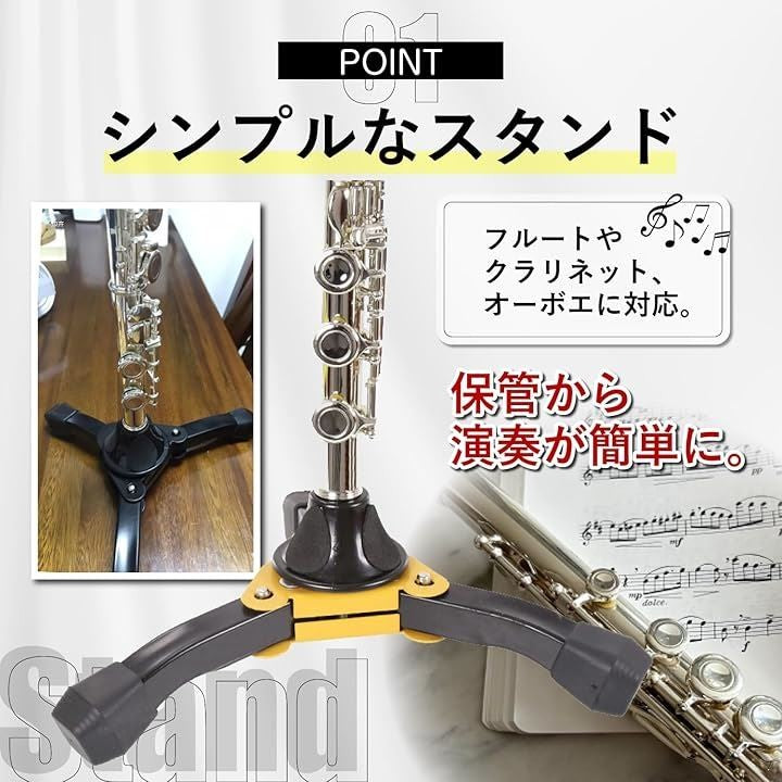 クラリネットスタンド トロンボーン フルートスタンド お手入れセット 折りたたみ コンパクト 軽量 収納 3本