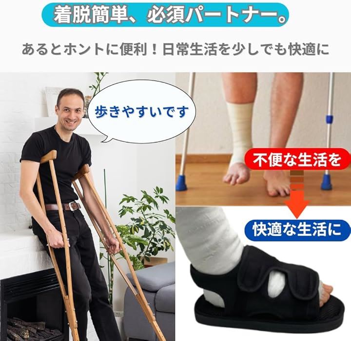 足 骨折 靴 足骨折サンダル ギプス リハビリ 片足 左右兼用 調整可能 松葉杖
