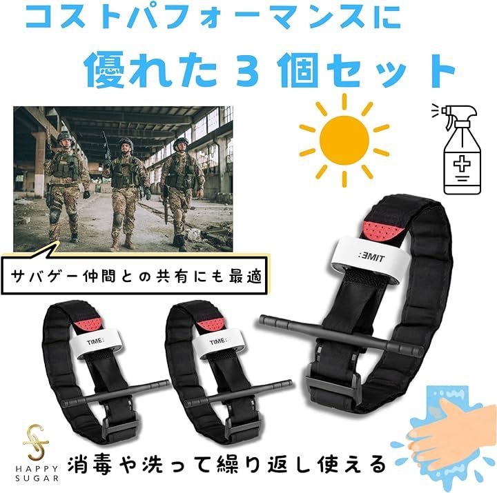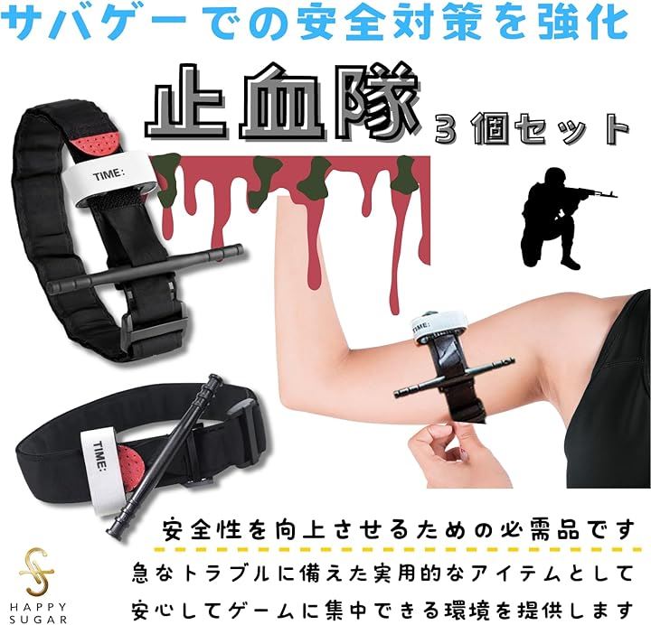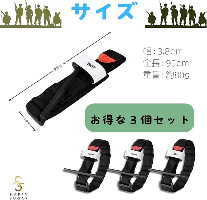 止血帯 止血バンド 駆血帯 ターニケット 止血パッド 軽量駆血帯 伸縮止血帯 軍用 海兵隊 緊急 手当 サバゲー 3個セット