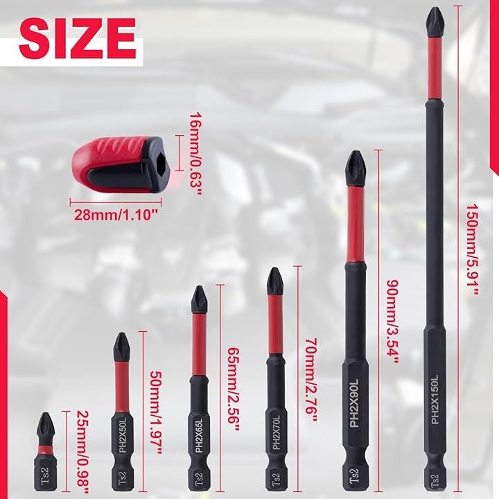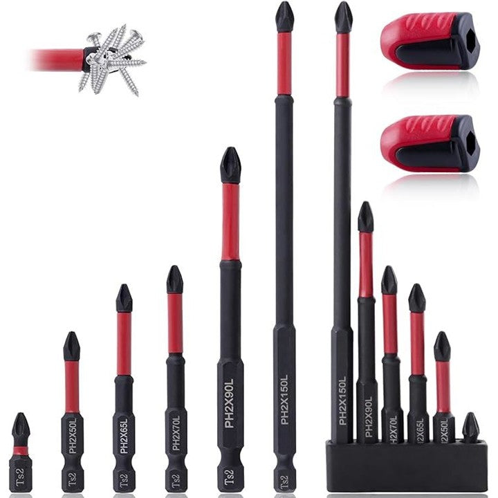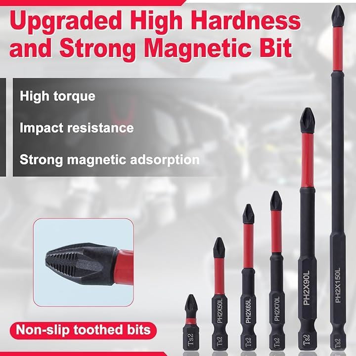 12本セット 強力磁気ビット プラスビット インパクトマグネット 1-2-3-3.5-4-6インチ長プラスヘッド 六角ビット 耐衝撃 滑り止め 高硬度のドリルビットドライバービット ドライバービットセット 磁石 電動ドライバービット