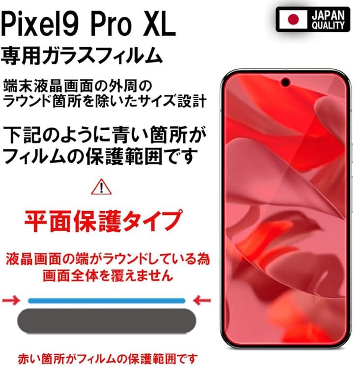 2枚セットフィルム Google Pixel 9 Pro XL 用 ガラスフィルム ブルーライトカット 93% 保護フィルム 強化 高透過 高光沢 日本製 旭硝子 硬度10H 2.5Dラウンドエッジ 3D タッチ For