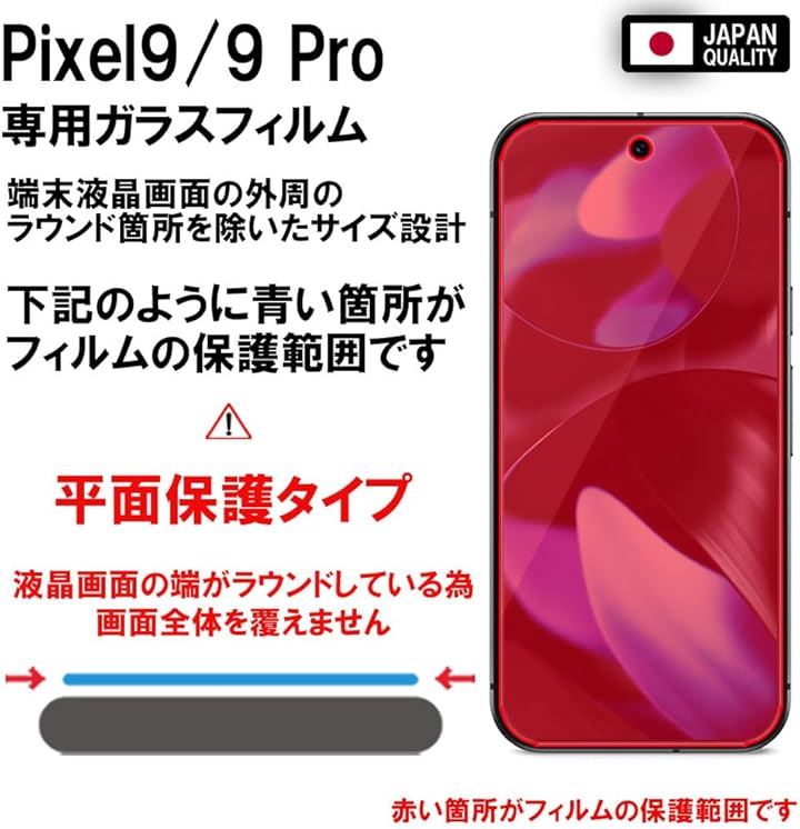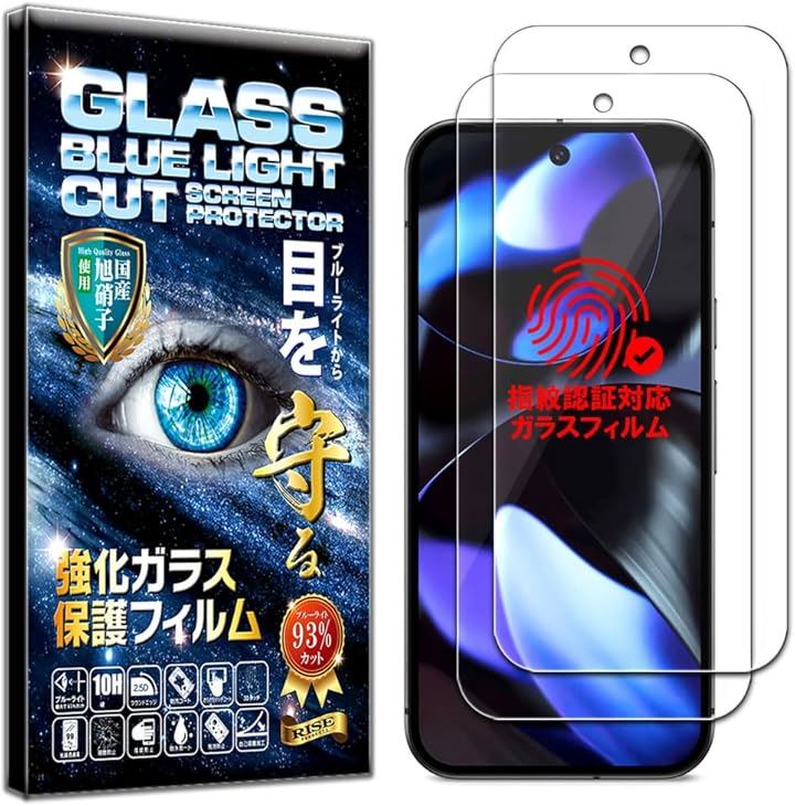 2枚セットフィルム Google Pixel 9/9 Pro 用 ガラスフィルム ブルーライトカット 93% 保護フィルム 強化 高透過 高光沢 日本製 旭硝子 硬度10H 2.5Dラウンドエッジ 3D タッチ For