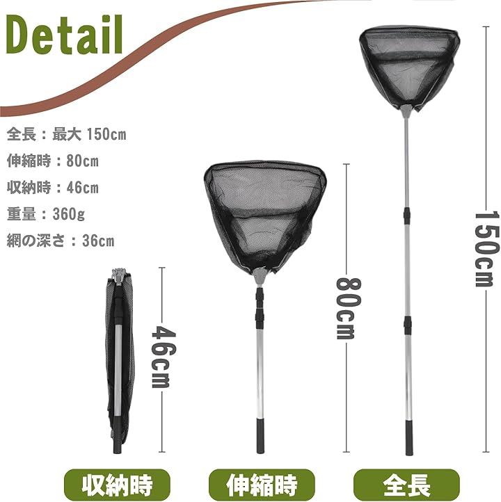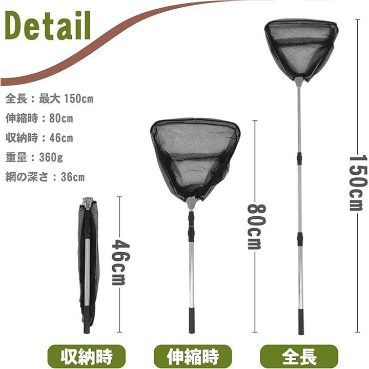 スプレンノ タモ網 ランディングネット 伸縮式 1.5m 折りたたみ式 三角網 軽量 防錆素材 淡水 海水 対応