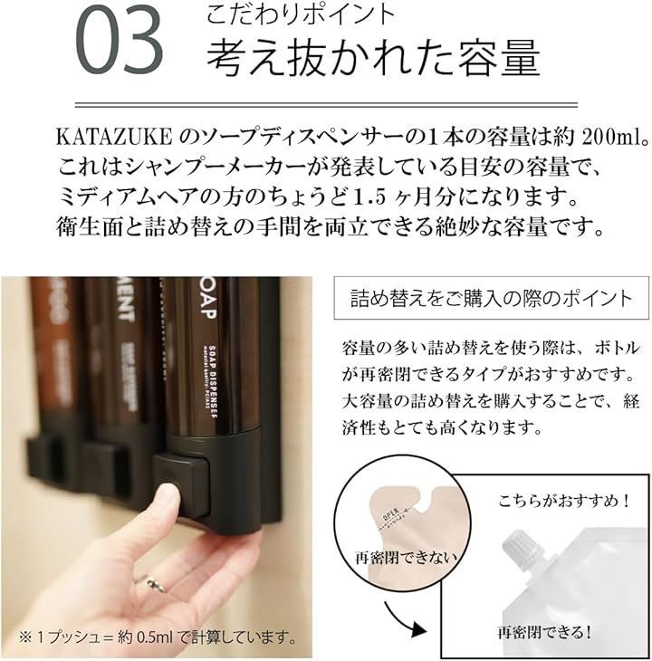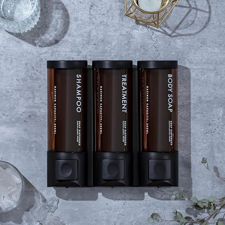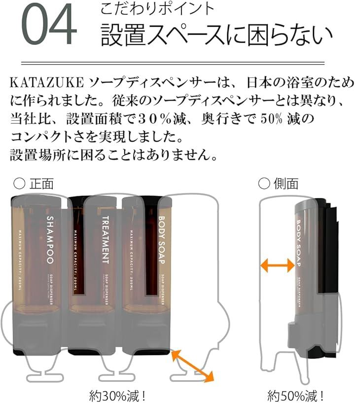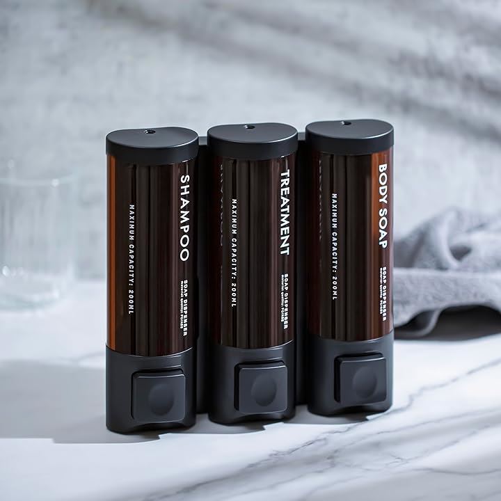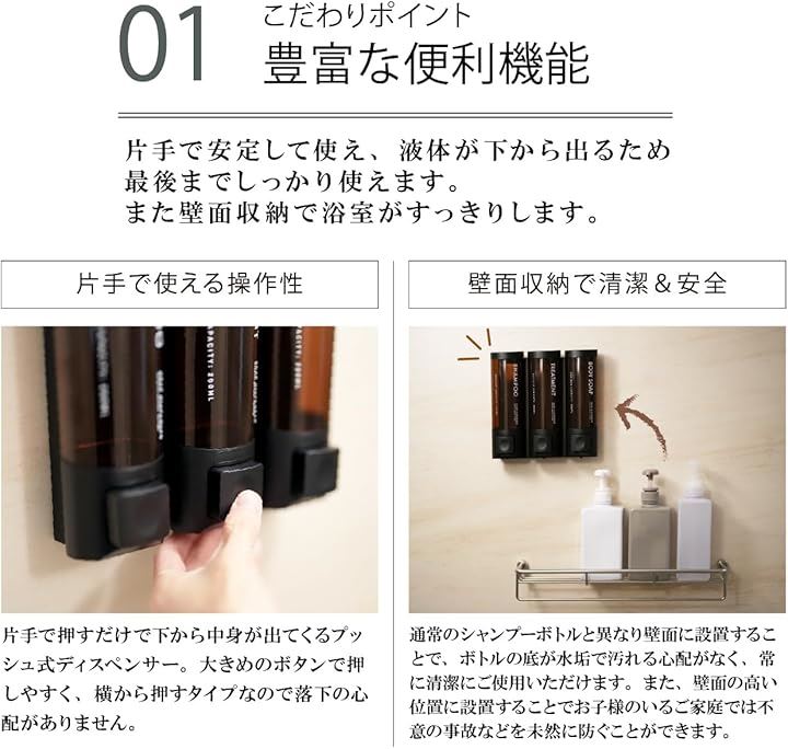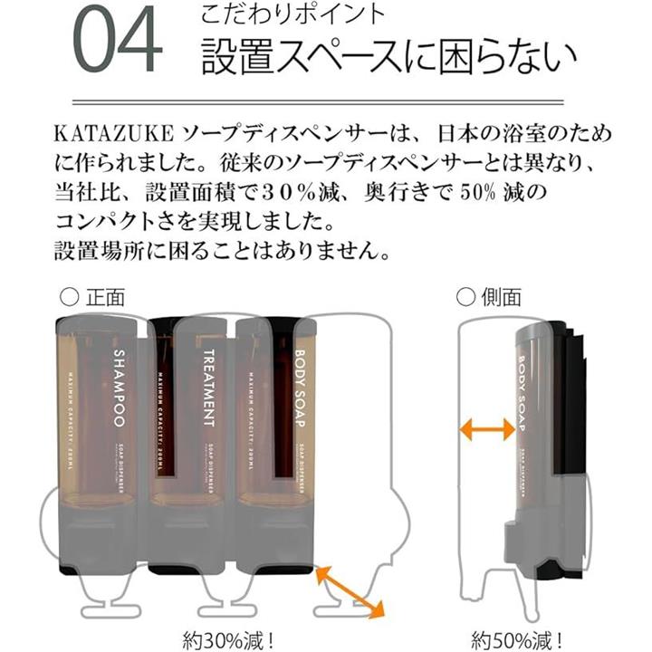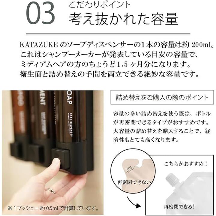 ソープディスペンサー シャンプーディスペンサー 壁掛け 磁石 マグネット 吊り下げ 3本 詰め替え 賃貸OK コンパクト ホテルライク モダン そのまま
