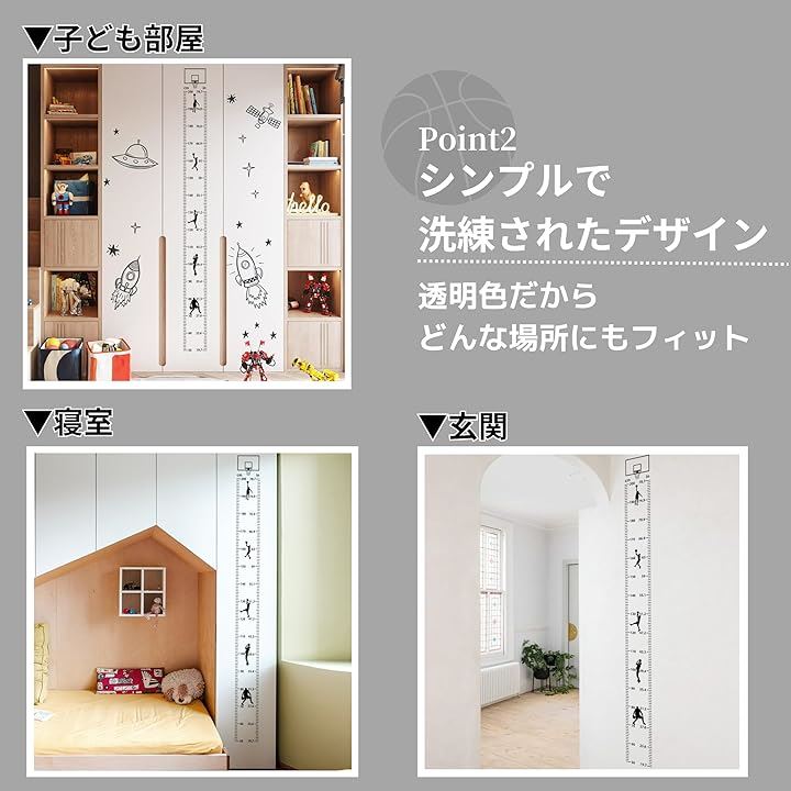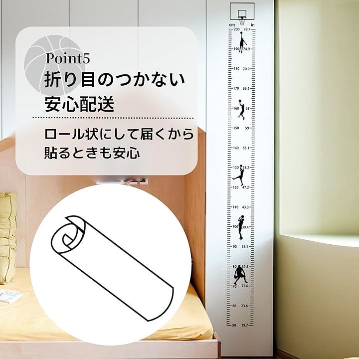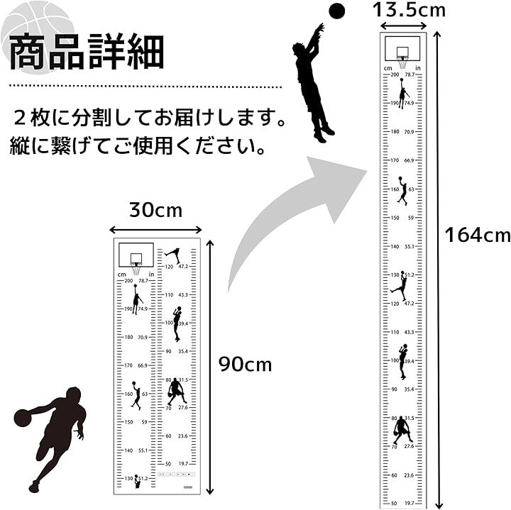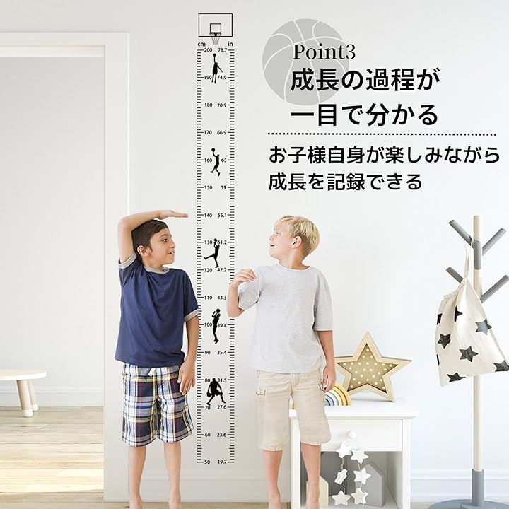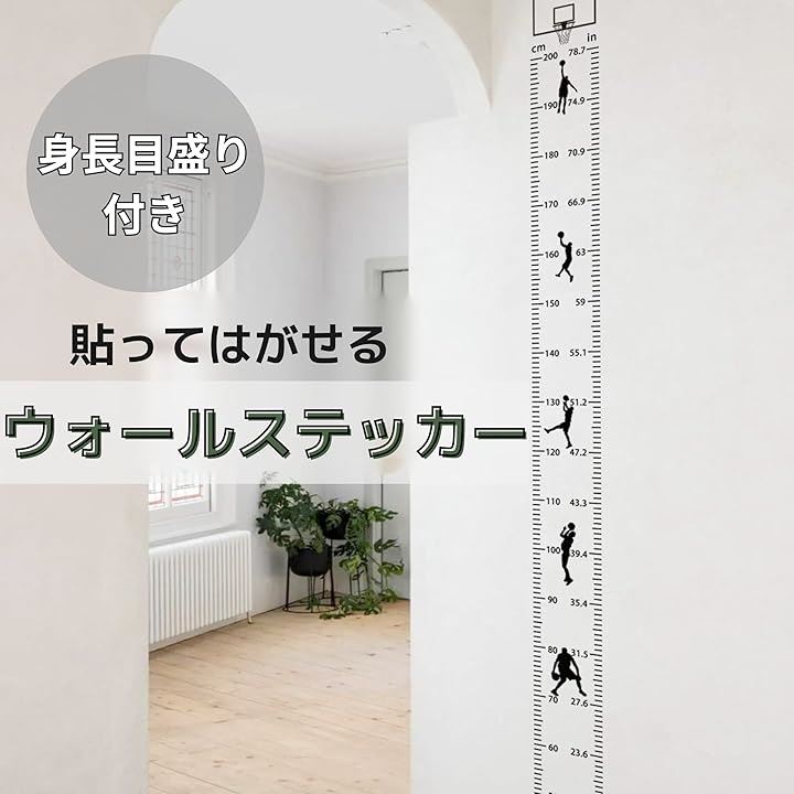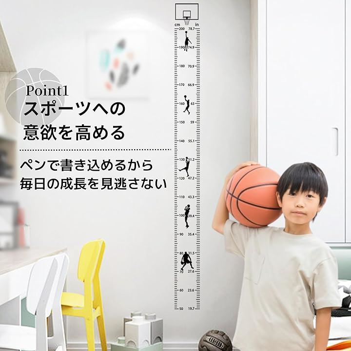 TikTrunk 身長計 バスケットボールデザイン 壁掛け ウォールステッカー 子供部屋 シンプル インテリア 身長測定
