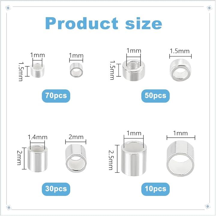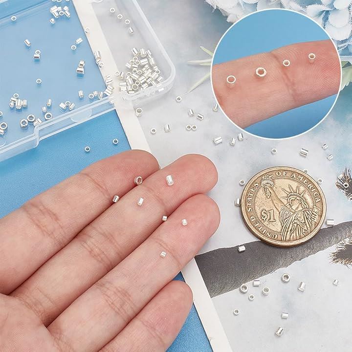160個 1.5/2/2.5mm 925スターリングシルバービーズ 管状 管状スターリングシルバービーズ スターリングシルバー大穴ビーズ ジュエリー作り 手作りパーツ スターリングシルバージュエリー