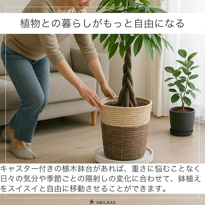 鉢植えの移動が大変で、腰や腕に負担を感じていませんか?そんな悩みをスマートに解決するのが、ABILEADの「キャスター付き植木鉢台」です。