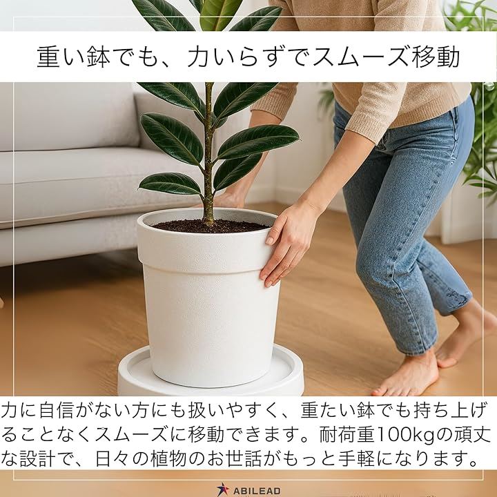ABILEAD 植木鉢台 キャスター付き 室内用 鉢受け台 プランター台 観葉植物 軽量 滑りにくい 360°回転 耐荷重100kg PP製 |