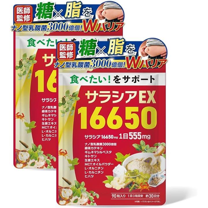医師監修 サラシアEX16650 糖質と脂質をWバリア/ナノ型乳酸菌 3000億個の贅沢配合 16650mg 9種類の厳選成分サポート配合 国内製造 90粒 30日分