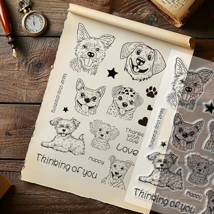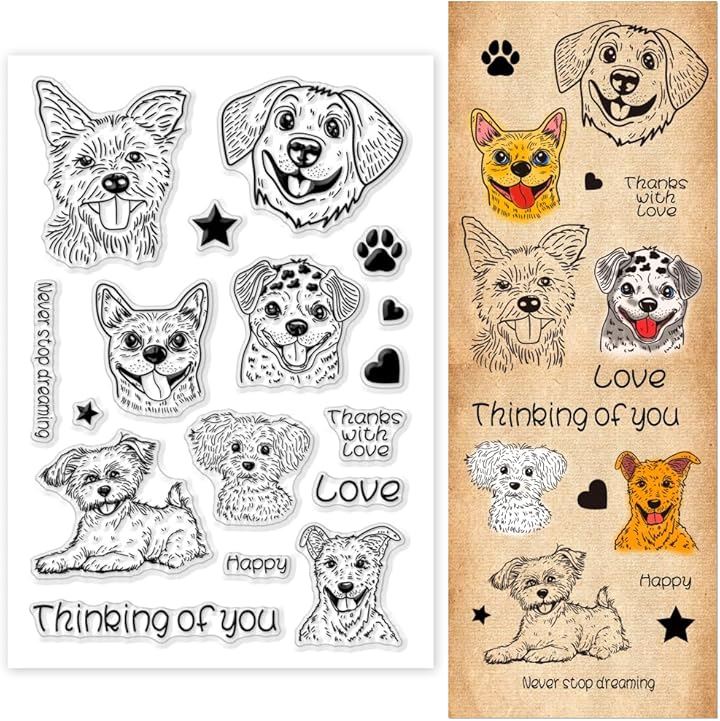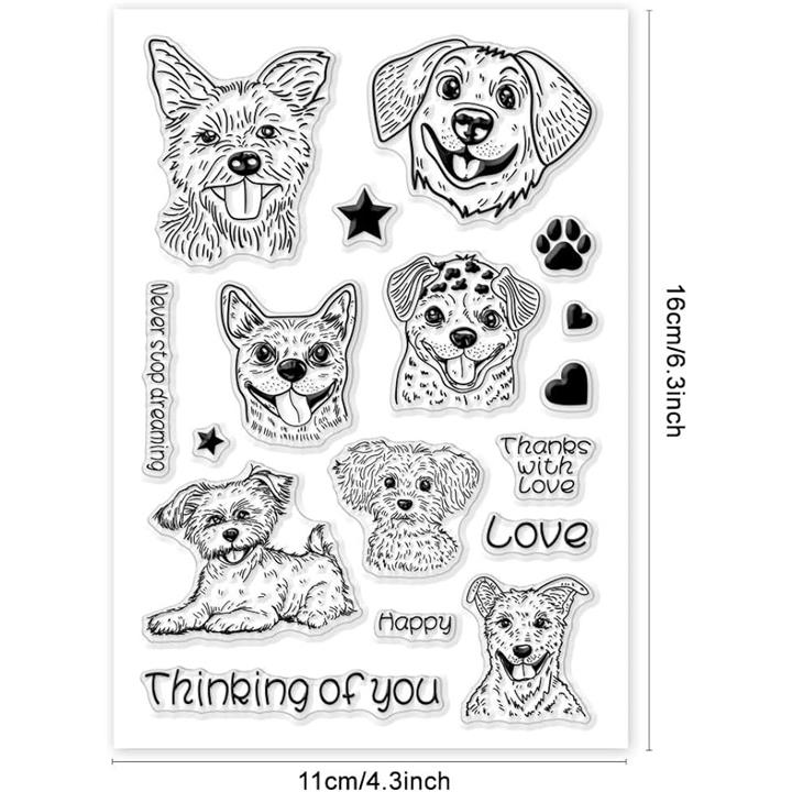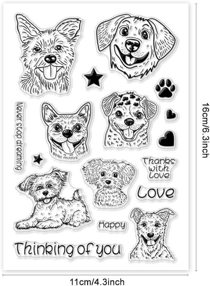 16x11cm 17パターン シリコンスタンプ 犬のテーマ かわいいスタンプ クリアスタンプ ゴム印 手帳用 手紙装飾