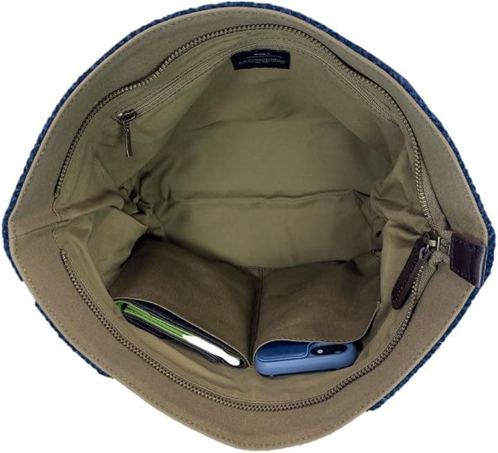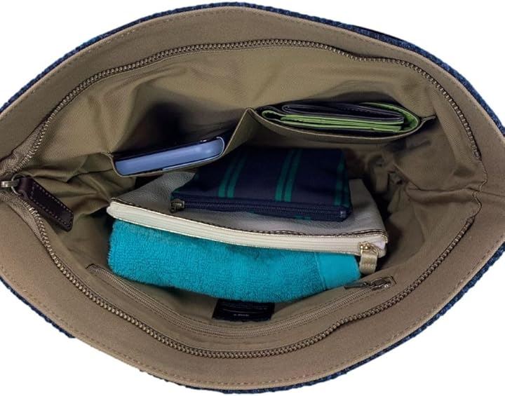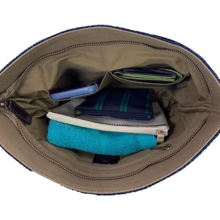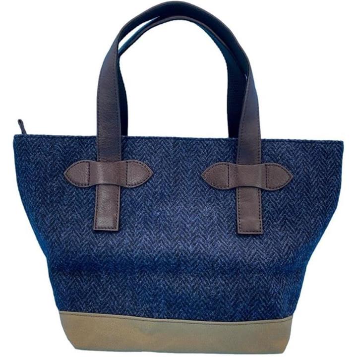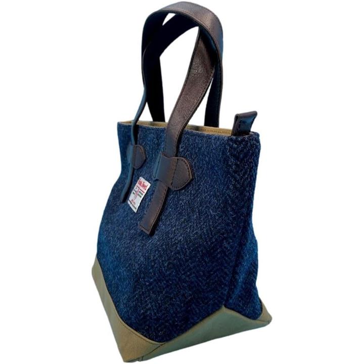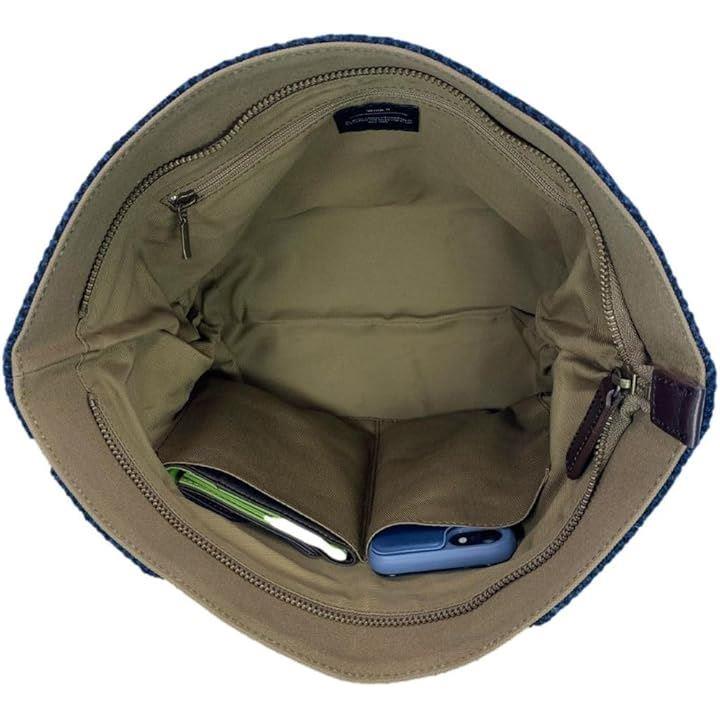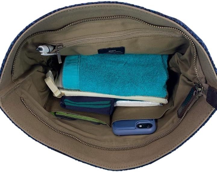 Harris Tweed ハリスツイードxパラフィン帆布の横型手提げトート、牛革付属、天ファスナー付き