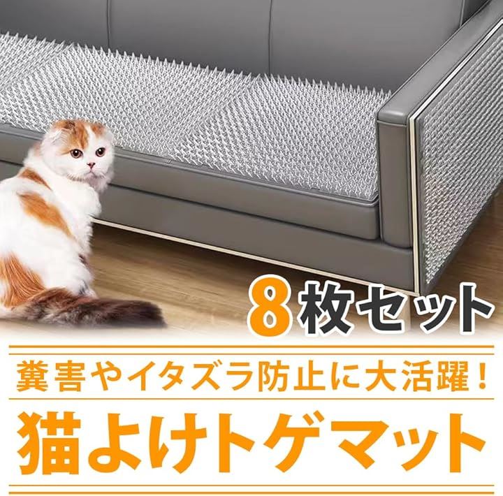 猫除けトゲトゲマット 屋外/屋内 侵入防止 糞害対策 クリアカラー カット可能 8枚セット