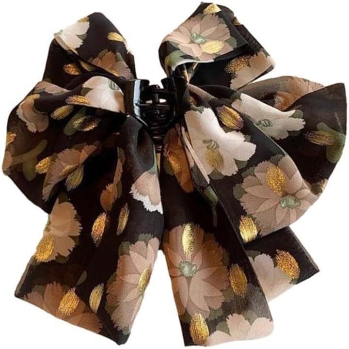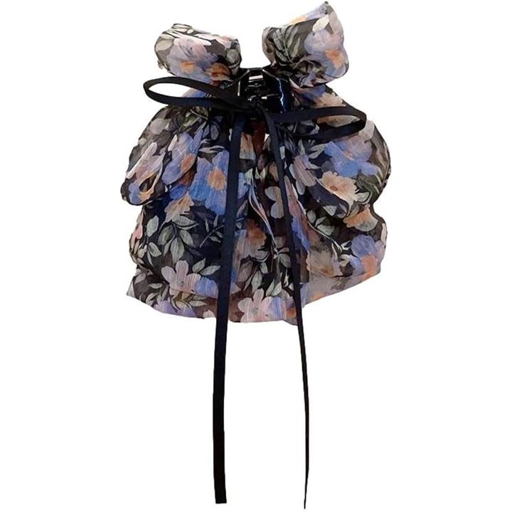 ヘアアクセサリー ビッグリボン レディース シフォン シアー エアリー 簡単アレンジ バンスクリップ 髪飾り まとめ髪 かわいい バレッタ きれいめ カワイイ清楚 優雅 柄 小花柄 おしゃれ BB057
