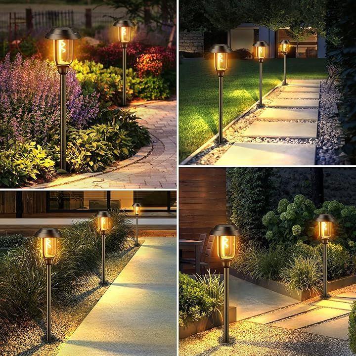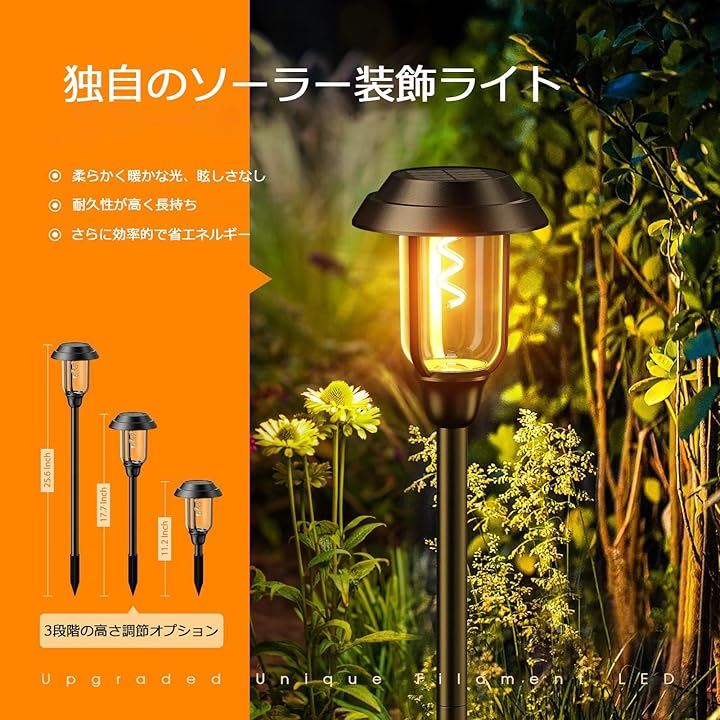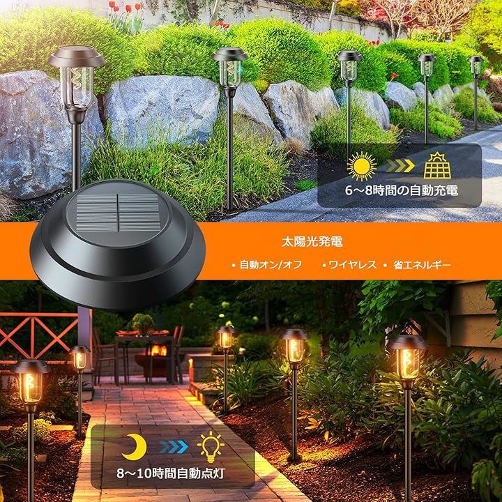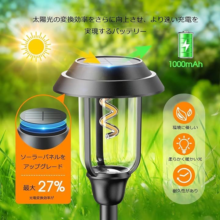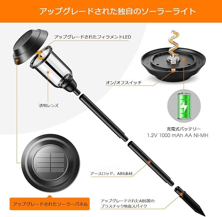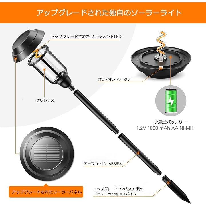 ソーラーガーデンライト 自動点灯・消灯 ソーラー芝生ランプ ソーラー式配線・電気工事不要 太陽光パネル 地面差し込み式 IP65防水 お庭/玄関先/花壇/樹木/パーク歩道パスライト/ガーデンをライトアップの灯 4個セット