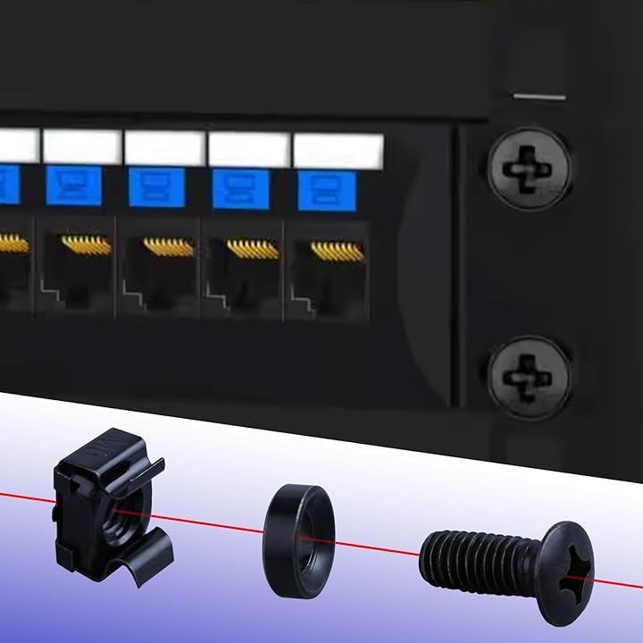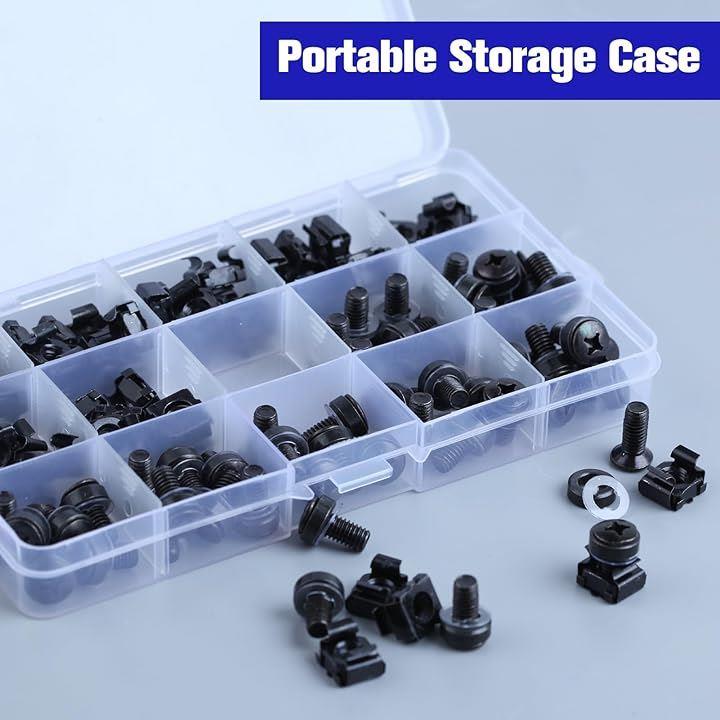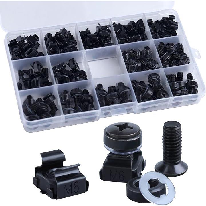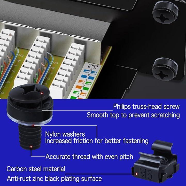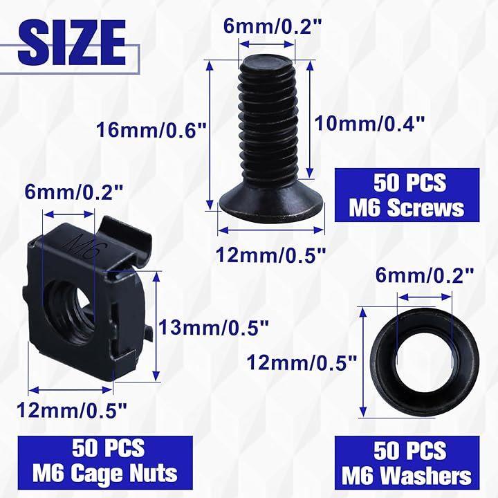 互換品 ラックマウントケージナット M6 x 16 mm ケージナットとナイロンワッシャー ネジセット 50セット ケージナットツール クリップナット 取り付けネジ M6化粧ビス 防錆 サーバーラックキャビネットへの取付け専用 固定用 ネジナットセット ブラック