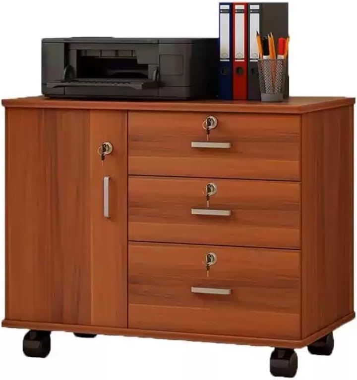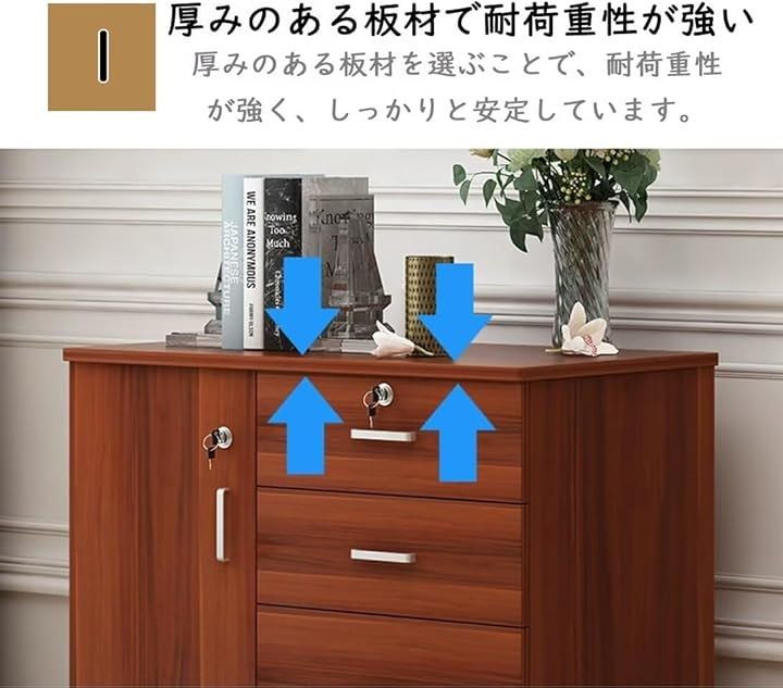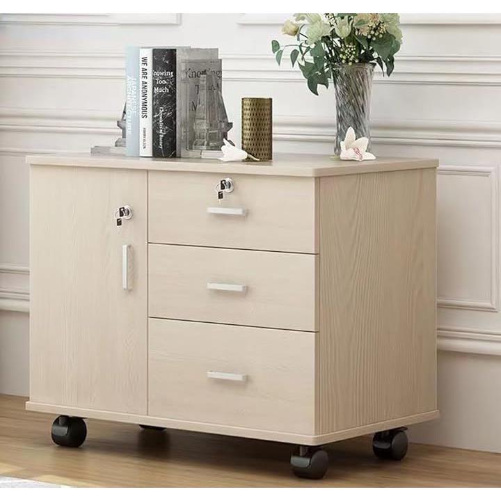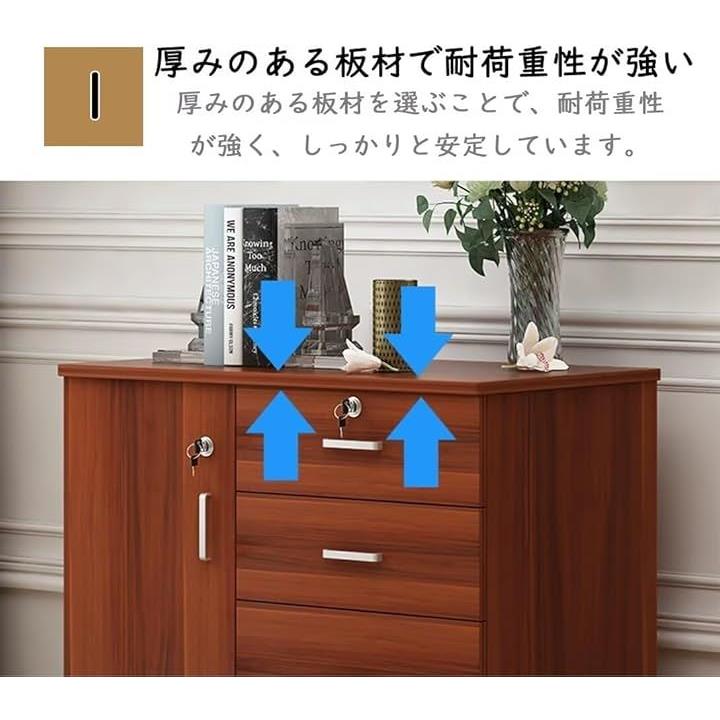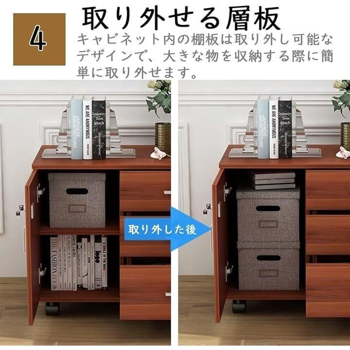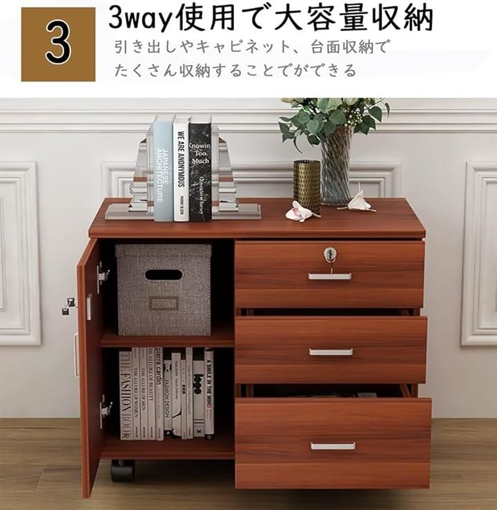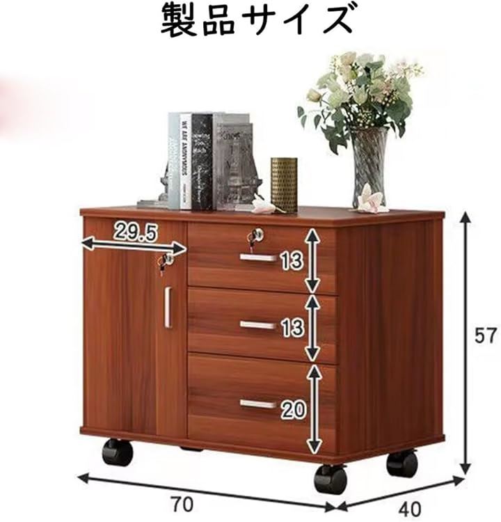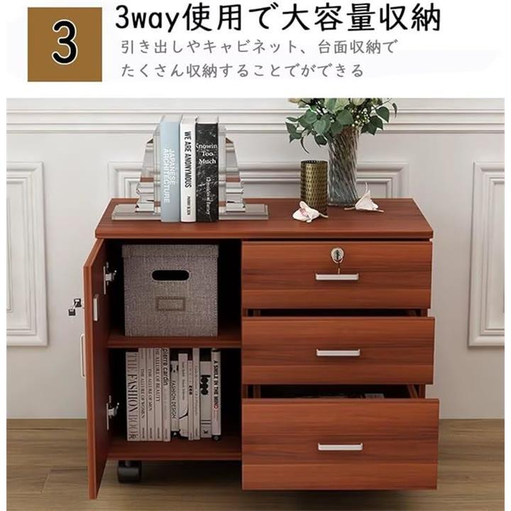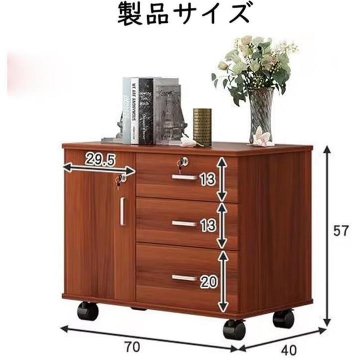 デスクワゴン サイドワゴン キャビネット オフィスワゴン 幅70cmx奥行き40cmx高さ57cm 完成品 組み立て不要 木製 引き出し 鍵付き 自在キャスター付き 大容量収納