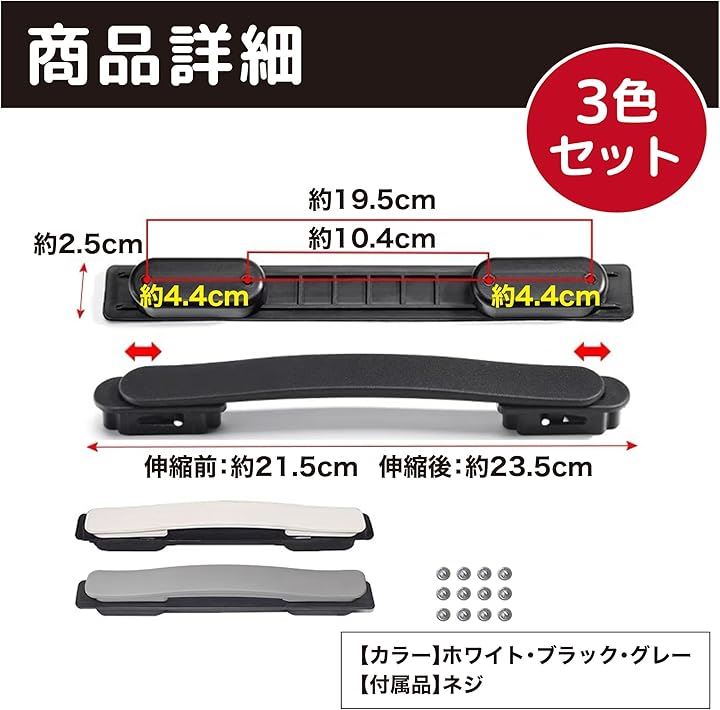 Edison Brain スーツケース ハンドル 交換 グリップ 修理 3個セット 取っ手 持ち手 部品 キャリーケース ネジ付き DIY 補修 代用品 取替え 旅行 出張 復活 ホワイト グレー ブラック 3色