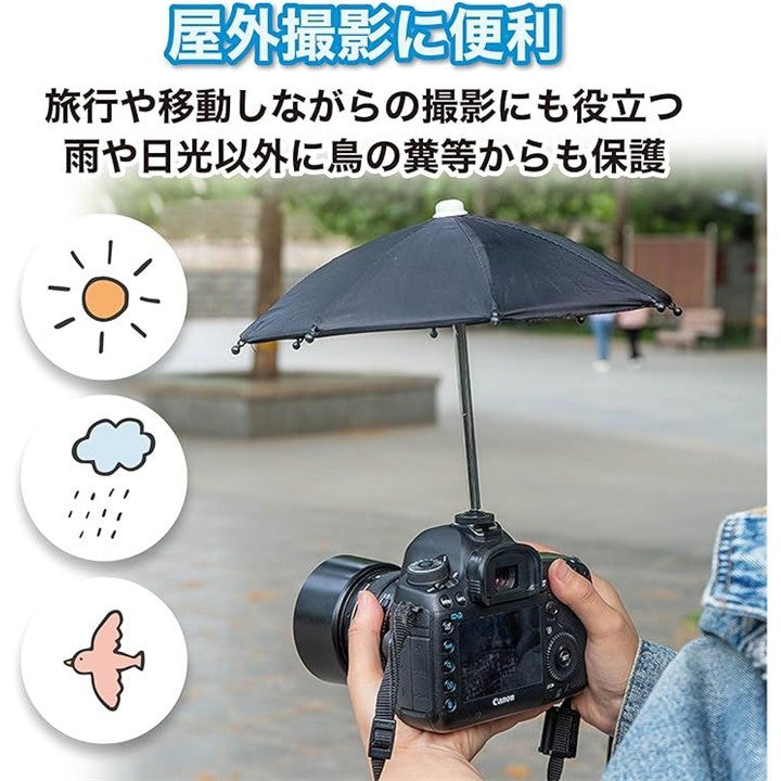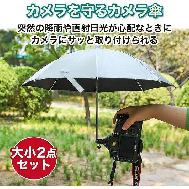 EdisonBrain カメラ ホットシュー 傘 直径 50cm 27cm 2サイズセット 日除け 雨除け 角度調整可能 汎用 遮光 反射 防止 雨・鳥の糞・日光・雪からカメラを守る 防水 防雨 撮影 アクセサリー