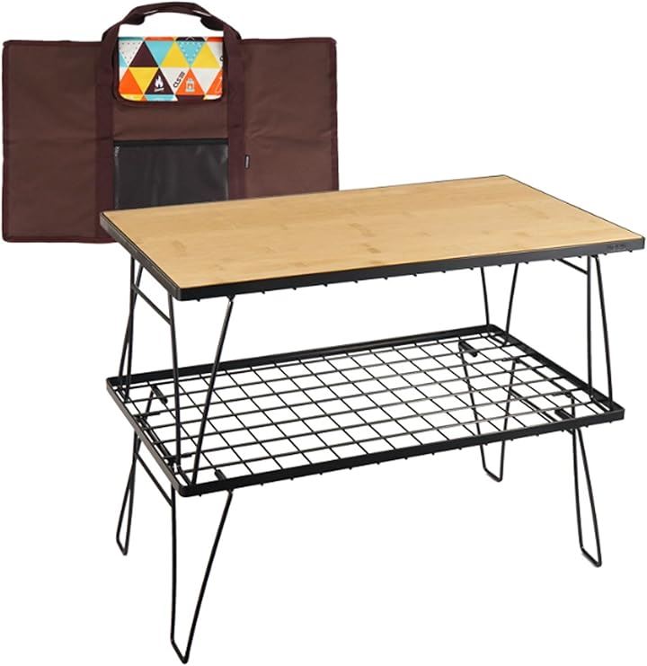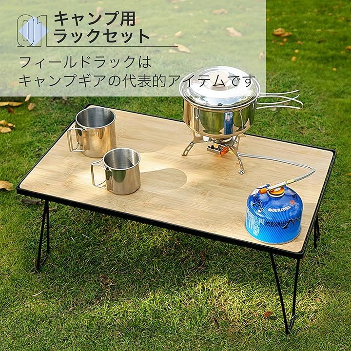 アウトドアテーブル 折りたたみ式 フィールドラック キャンプ ウッドテーブル 収納ケース付 3点セット