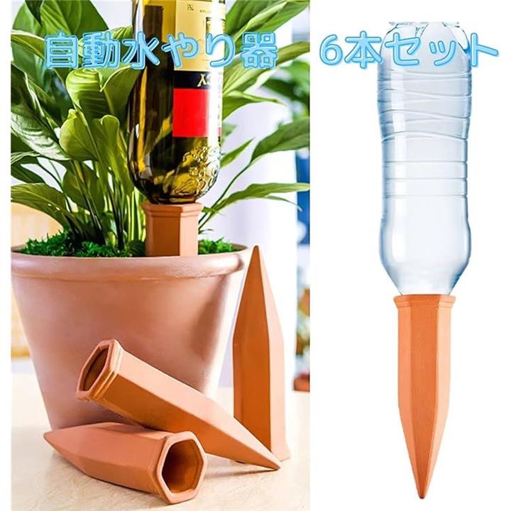 自動水やり器 6本 プランター 陶器 景観デザイン 自動給水キャップ 自動給水灌漑 給水ツール ペットボトル 楽 繰り返し使用 ガーデニング用品 観葉 植物 留守中