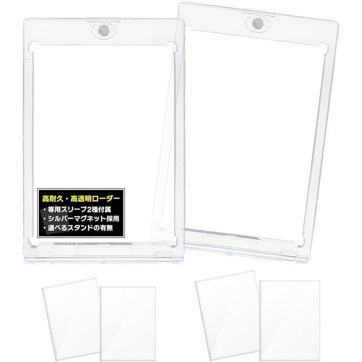 マグネットローダー トレーディングカード ケース カードローダー 両面 透明 トレカ マグネット ホルダー 保護 ディスプレイ 大容量 35pt カード スリーブ 2種付 Aideaz |