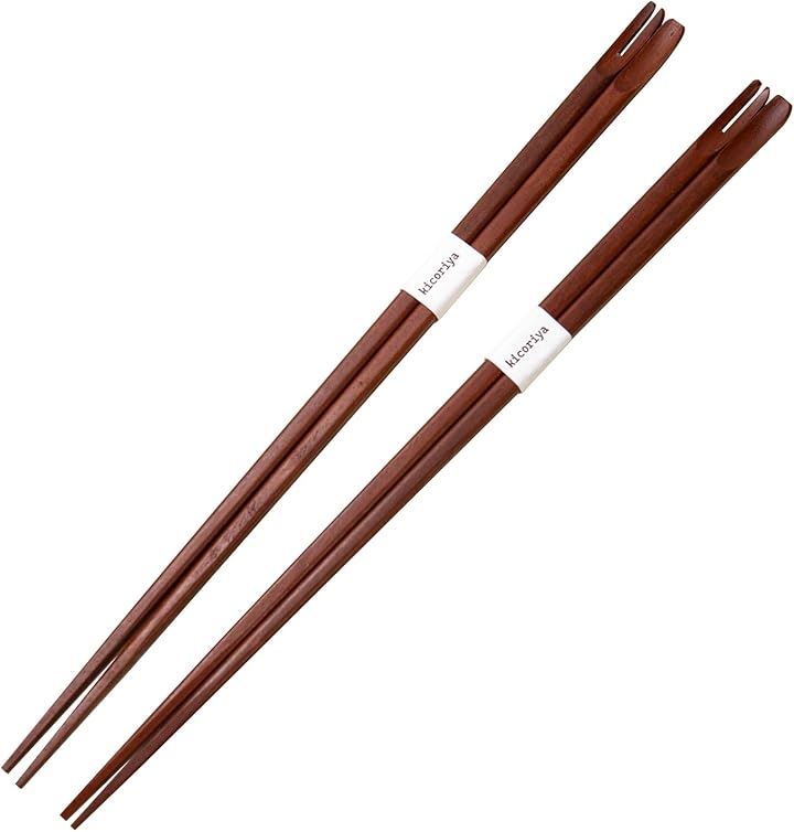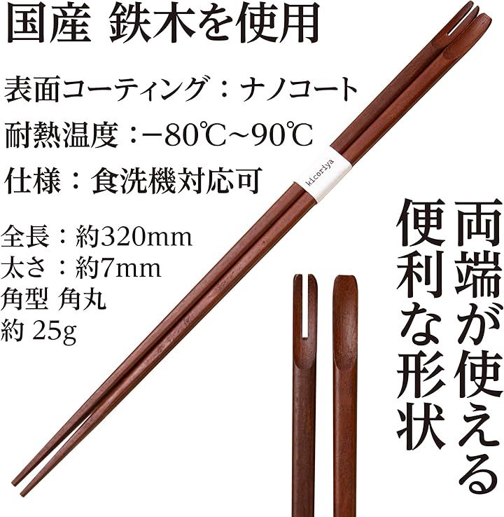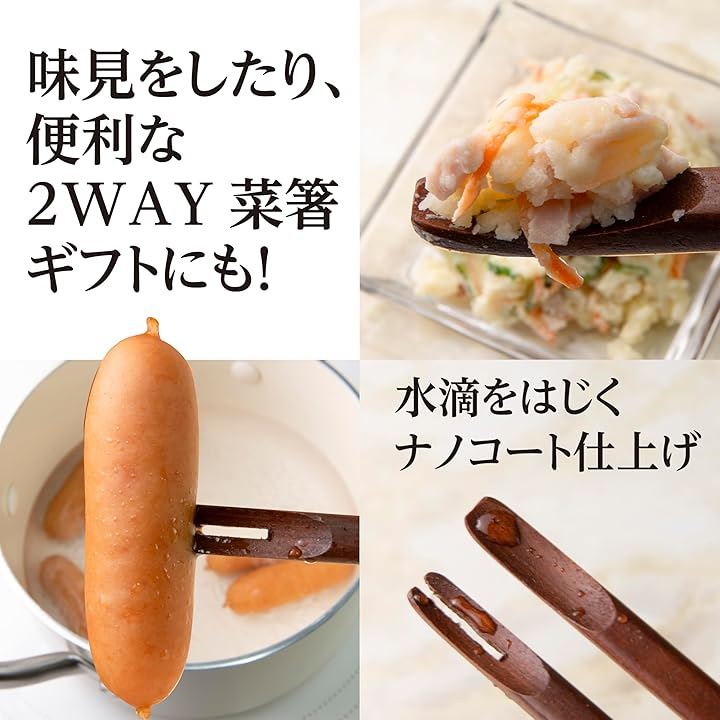 菜箸 食洗機対応 味見 フォーク スプーン付 木製 耐熱 33cm 2本セット 天然木