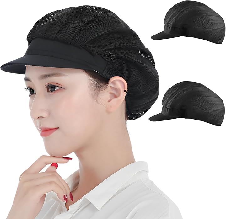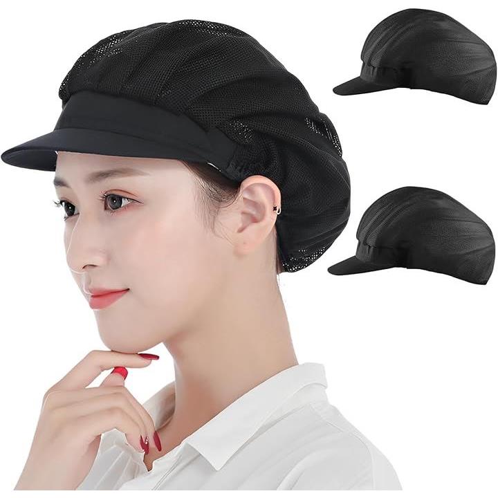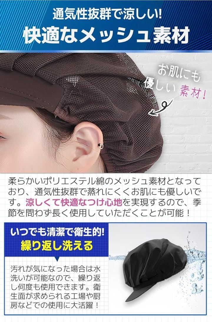 [fogman] 「管理栄養士監修」 衛生キャップ 帽子 つば付き 衛生帽子 調理用帽子 食品工場 厨房 業務用 2枚セット (ブラック フルメッシュ) |