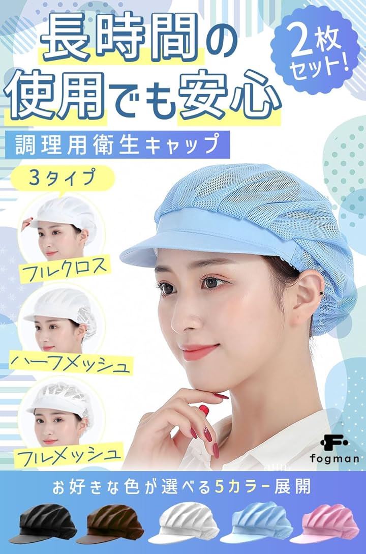 [fogman] 衛生キャップ 帽子 つば付き 衛生帽子 調理用帽子 食品工場 厨房 業務用 2枚セット |