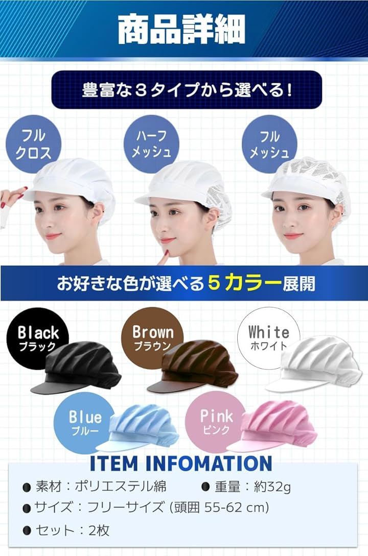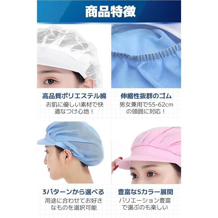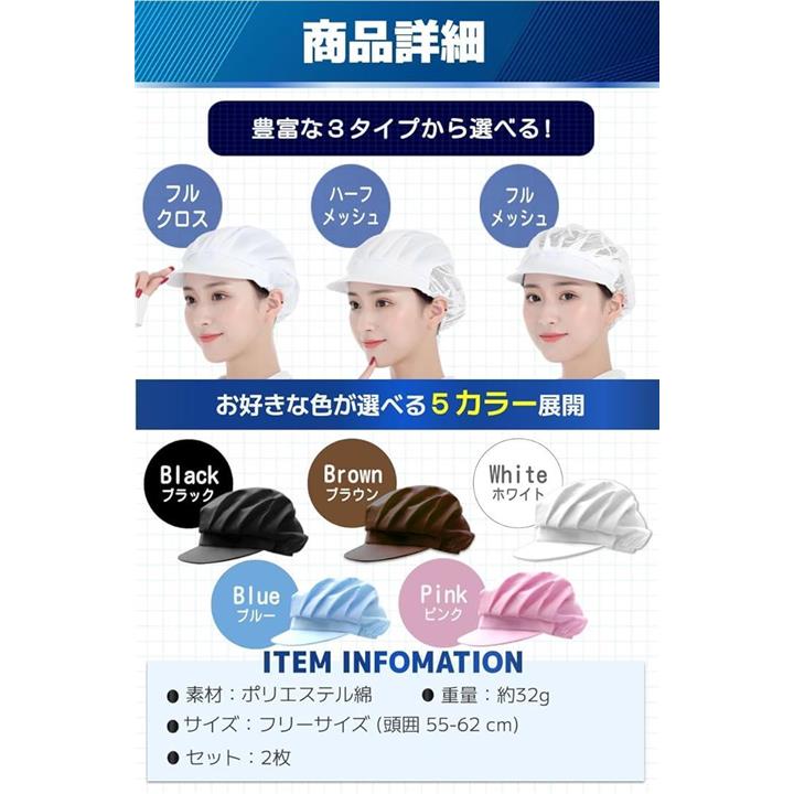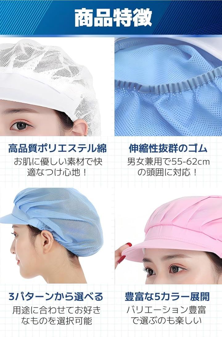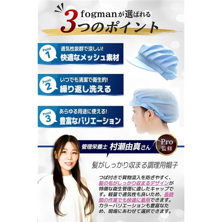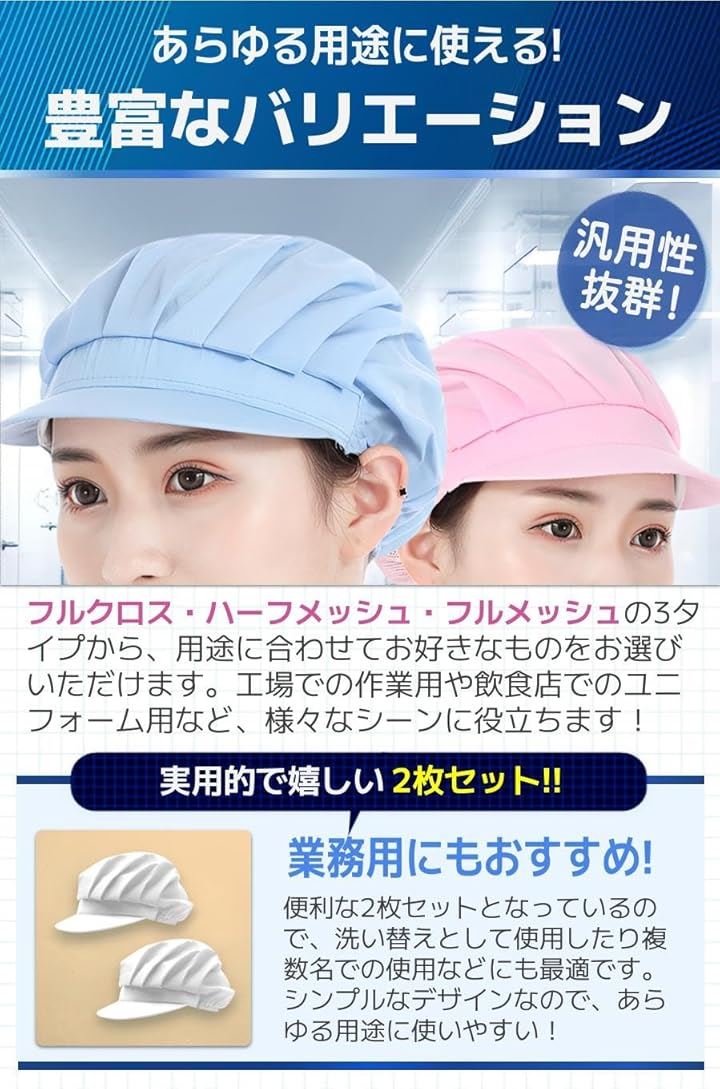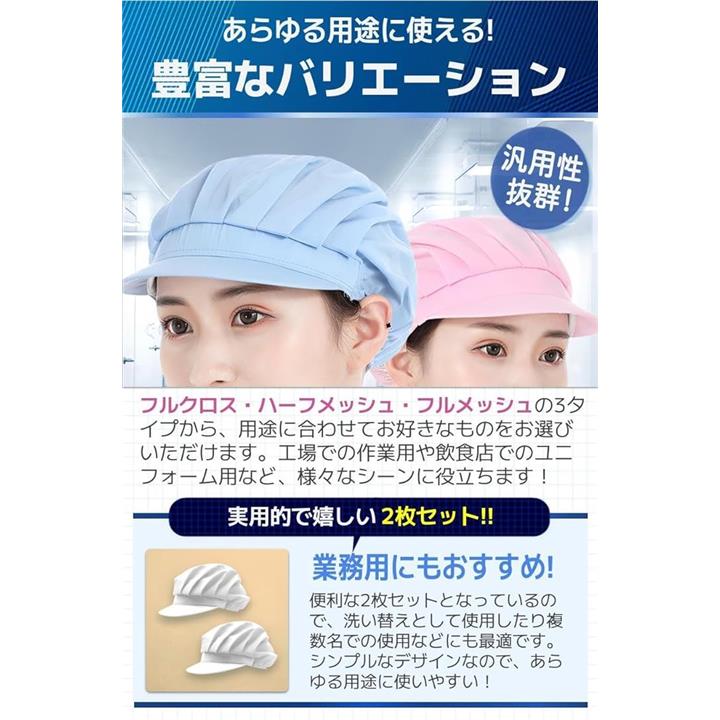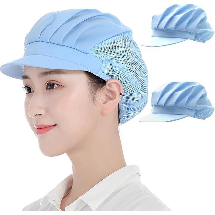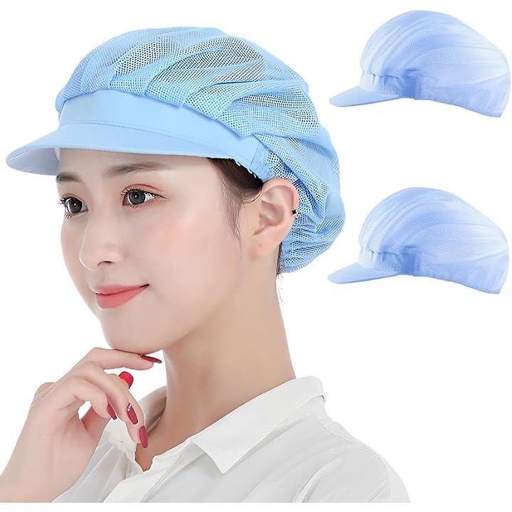 [fogman] 「管理栄養士監修」 衛生キャップ 帽子 つば付き 衛生帽子 調理用帽子 食品工場 厨房 業務用 2枚セット (ブルー ハーフメッシュ) |