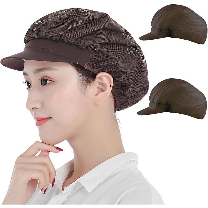 [fogman] 衛生キャップ 帽子 つば付き 衛生帽子 調理用帽子 食品工場 厨房 業務用 2枚セット (ブラウン フルメッシュ) |