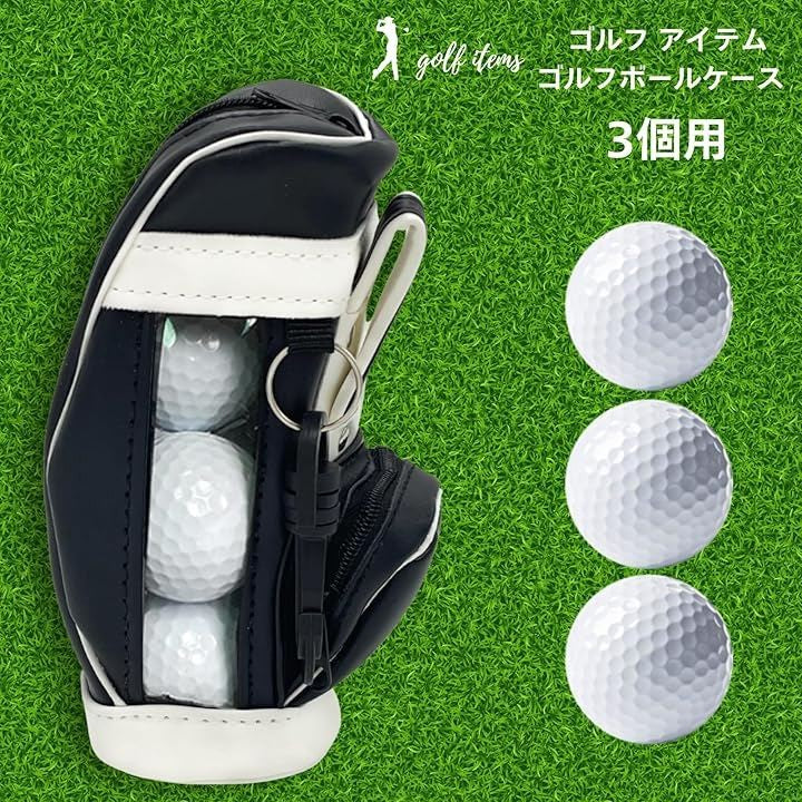 ゴルフボールケース 3個用 ゴルフバッグ ポーチ ベルト 腰 アイテム キーホルダー ボール収納ケース