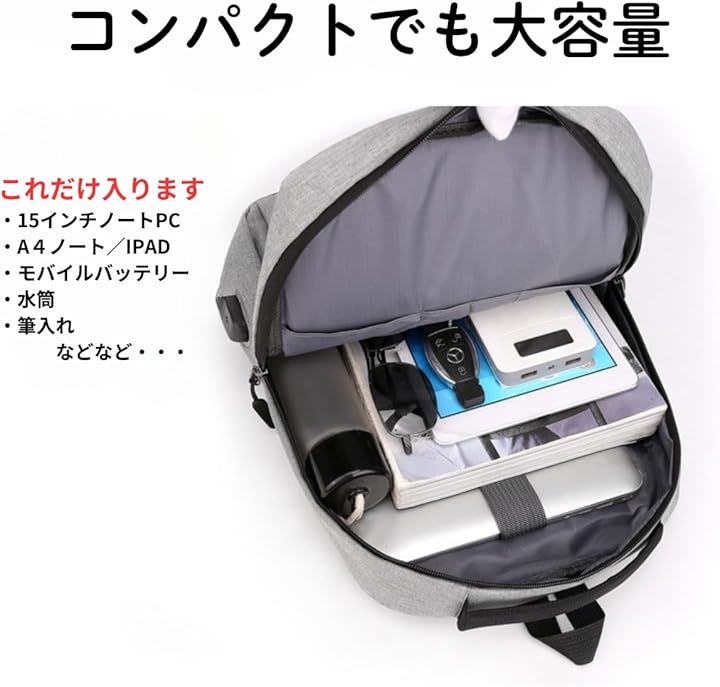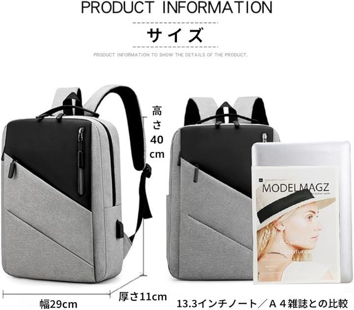 薄型リュック 薄さ11cm USB接続可 軽量 防水 ノートパソコン タブレット 使いやすい 斜めチャック