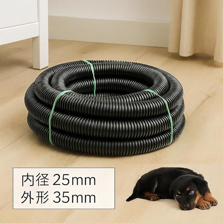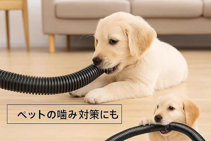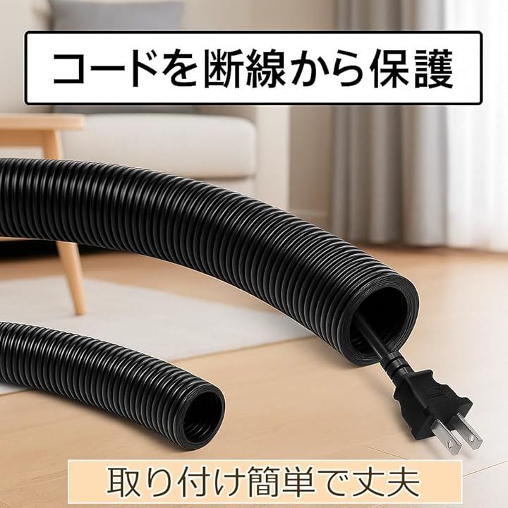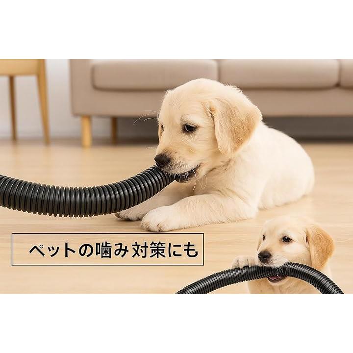 コードカバー コルゲートチューブ 配線カバー ペット 猫 噛み防止 配線保護 配線チューブ コードプロテクター 配線モール ケーブルプロテクター 断線防止ブラック 1m