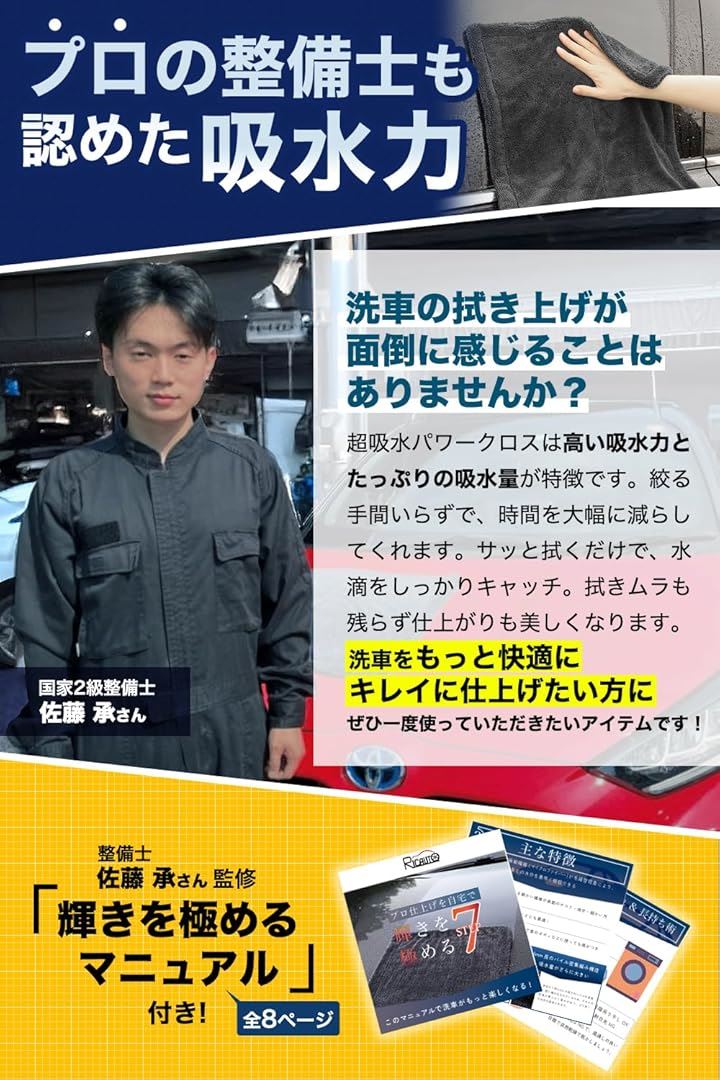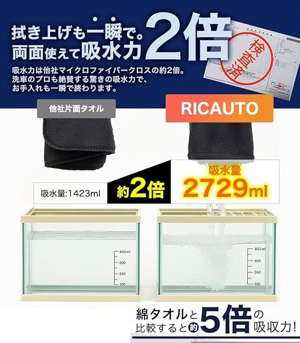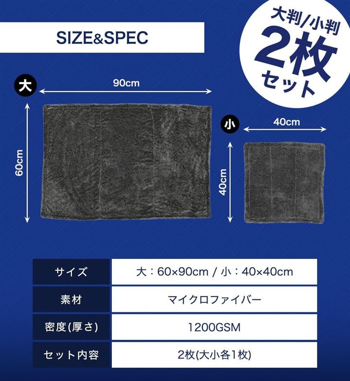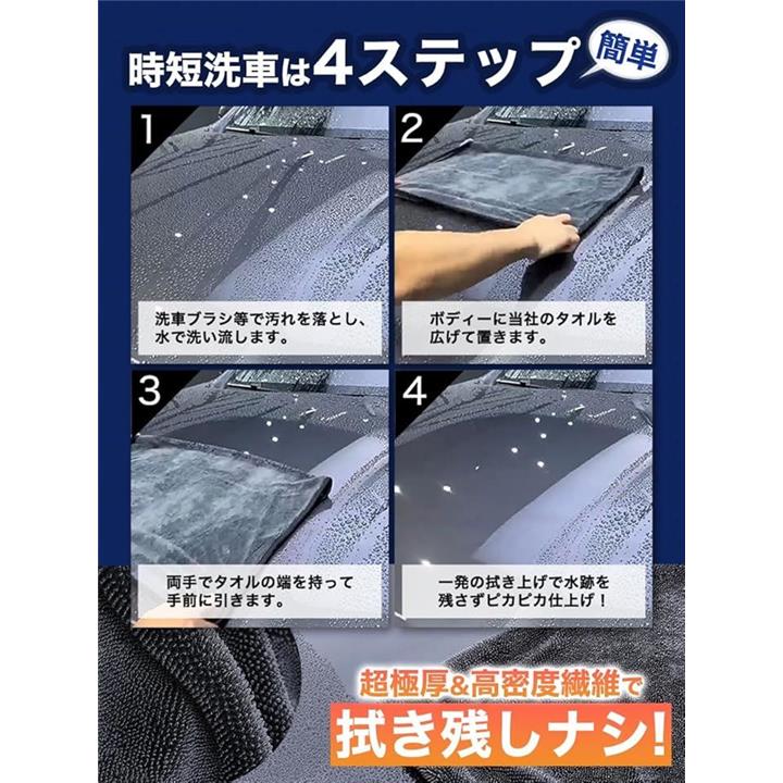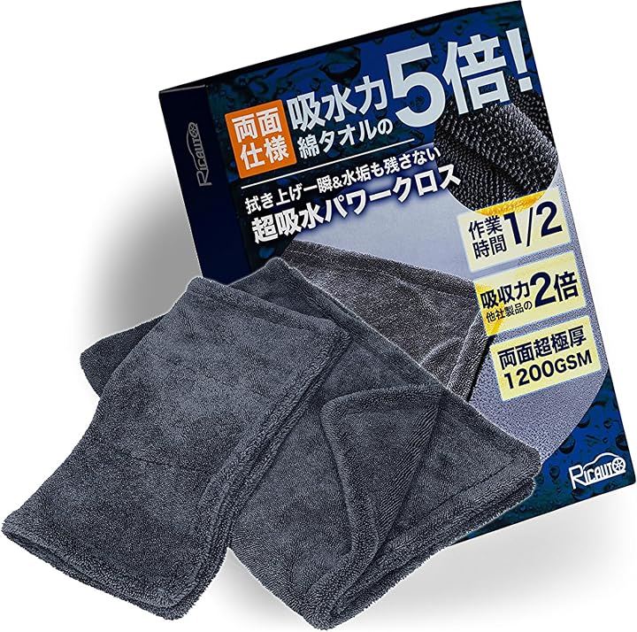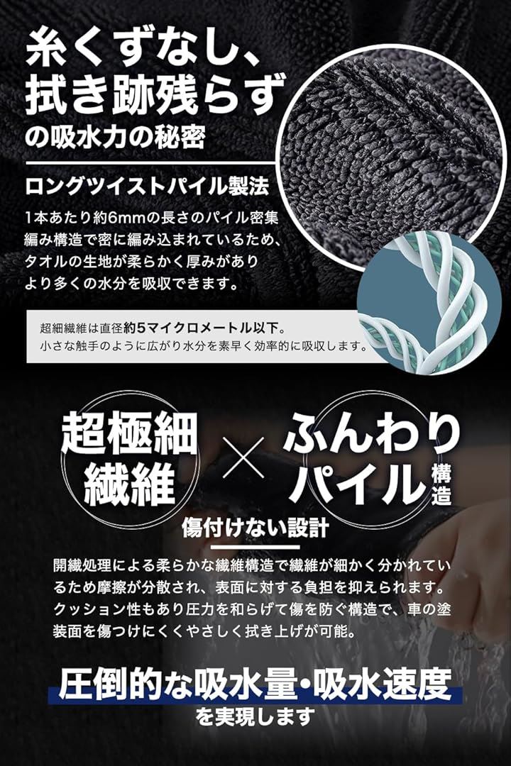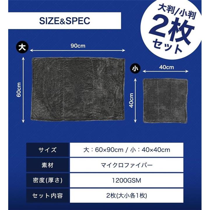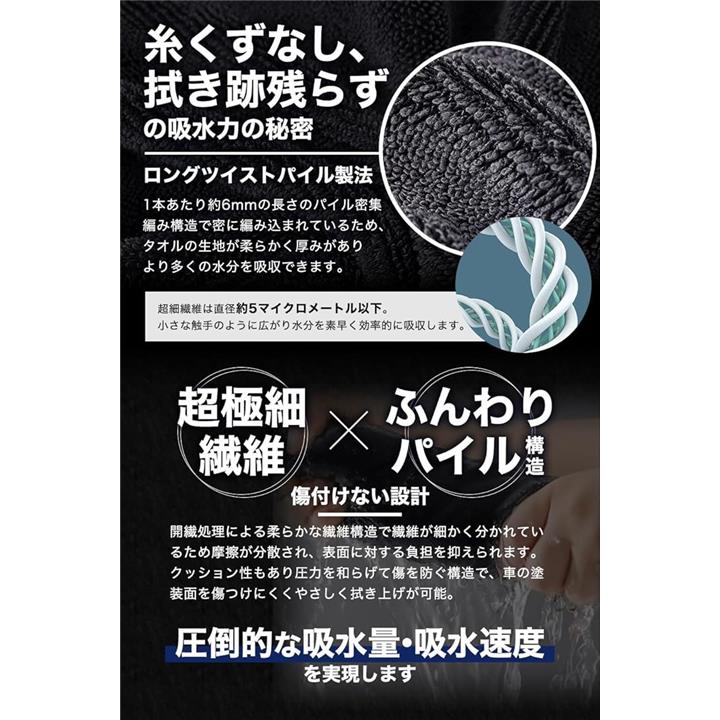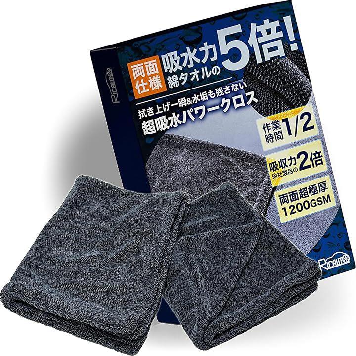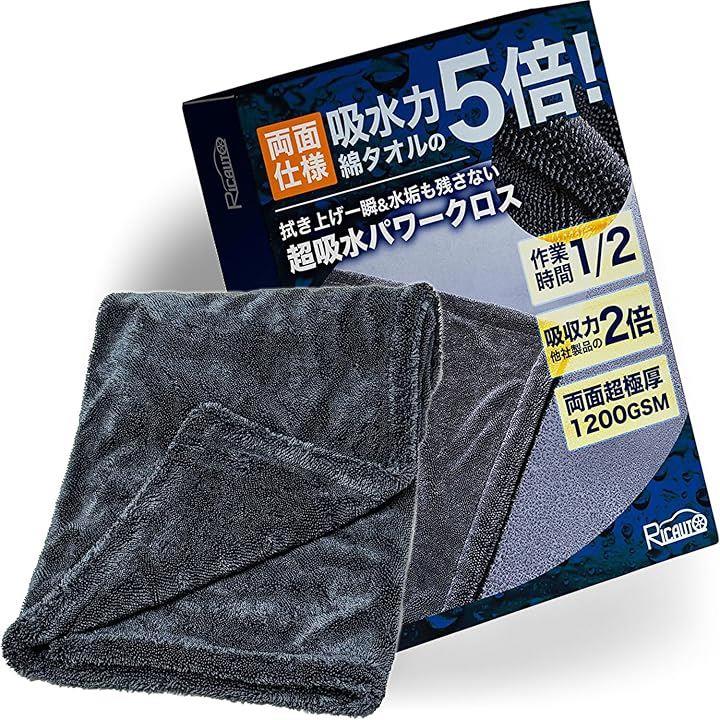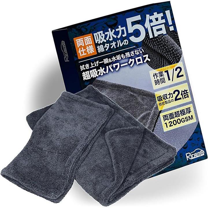 洗車 マイクロファイバークロス タオル ながら洗車 超吸水 両面使用 拭き上げ専用 ドライヤークロス 1200GSM 大判 厚手ツイストパイル