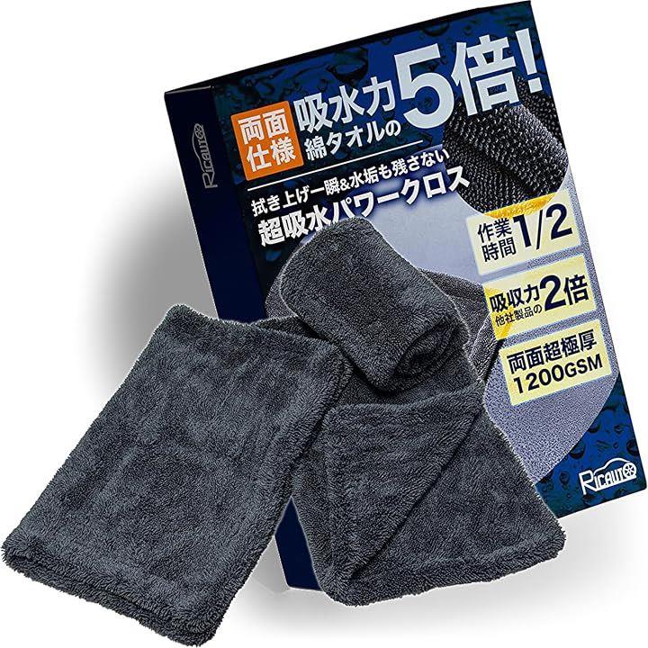 マイクロファイバークロス 洗車 タオル ながら洗車 超吸水 両面使用 拭き上げ専用 ドライヤークロス 1200GSM 厚手ツイストパイル