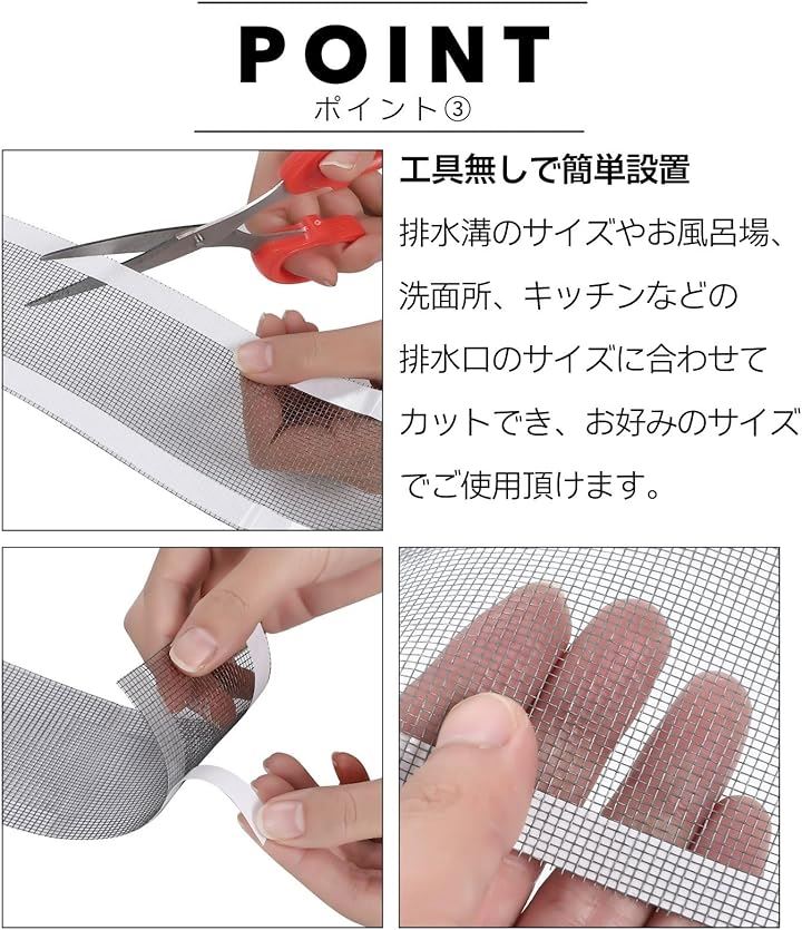 排水溝口 ハイスイコウ ネット シンク カバー メッシュ テープ 洗面 ベランダ バルコニー ヘア キャッチャー 蓋