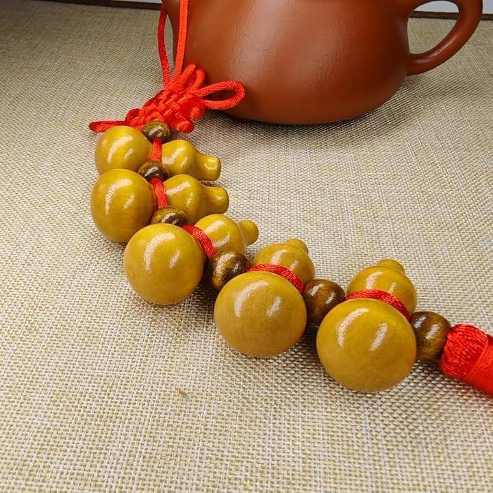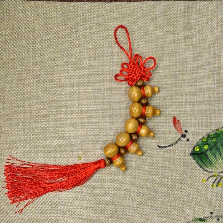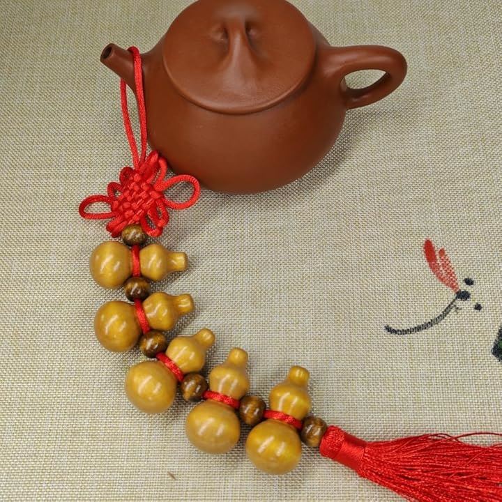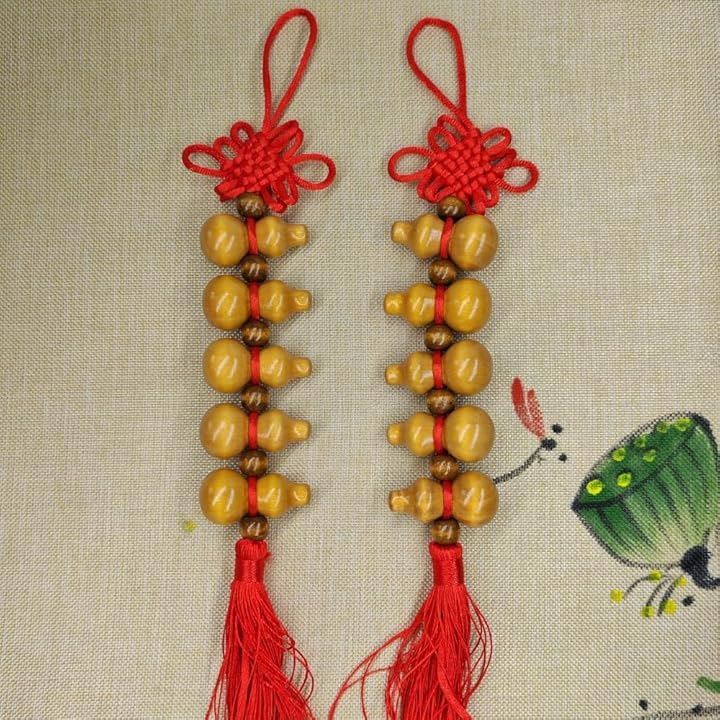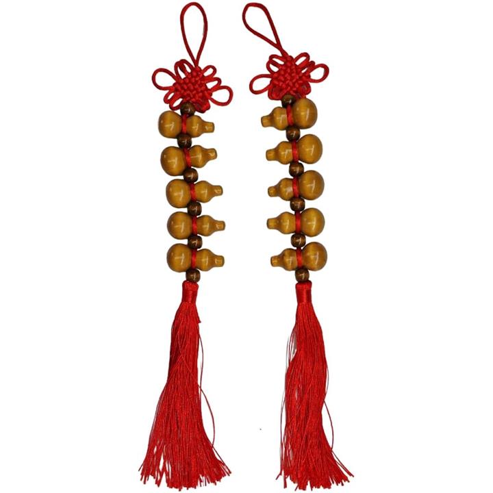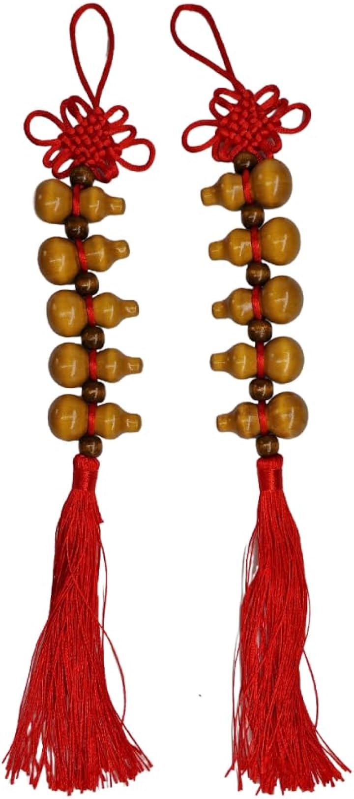 五福ひょうたん 5つの瓢箪の装飾 手編みストラップ 吉祥結び 赤い房飾り付き 縁起物の壁掛け 2個セット