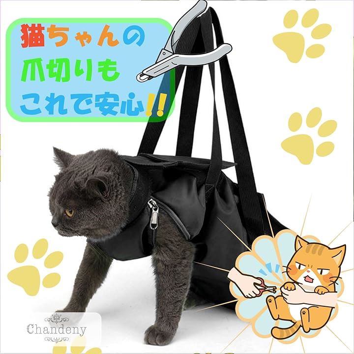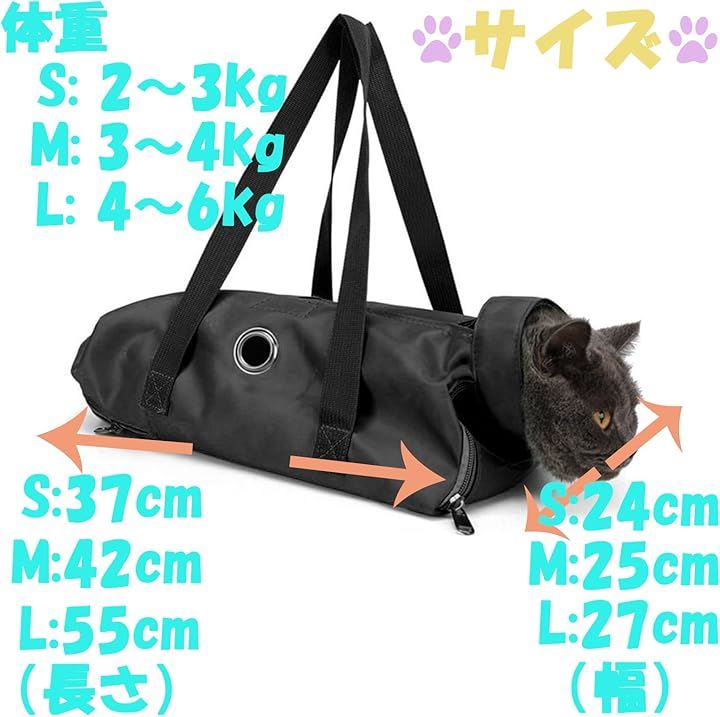 猫用 保定袋 グルーミングバッグ 爪切り 投薬 病院 テープ ファスナー付き